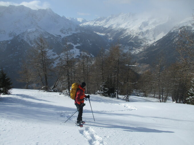 Schneesituation: wie oben bereits erwähnt, zu Tourenbeginn aber gar kein bis wenig Schnee. Qualität: überwiegend Pulver, aber auch Bruchharsch zwischendurch.