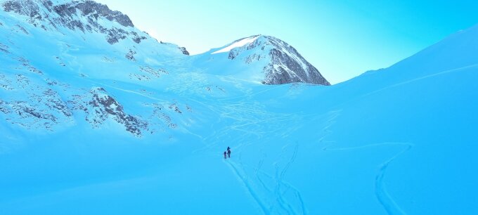 Tatsächlich ausgezeichnete Schneeverhältnisse! Powder auf der gesamten Tour.