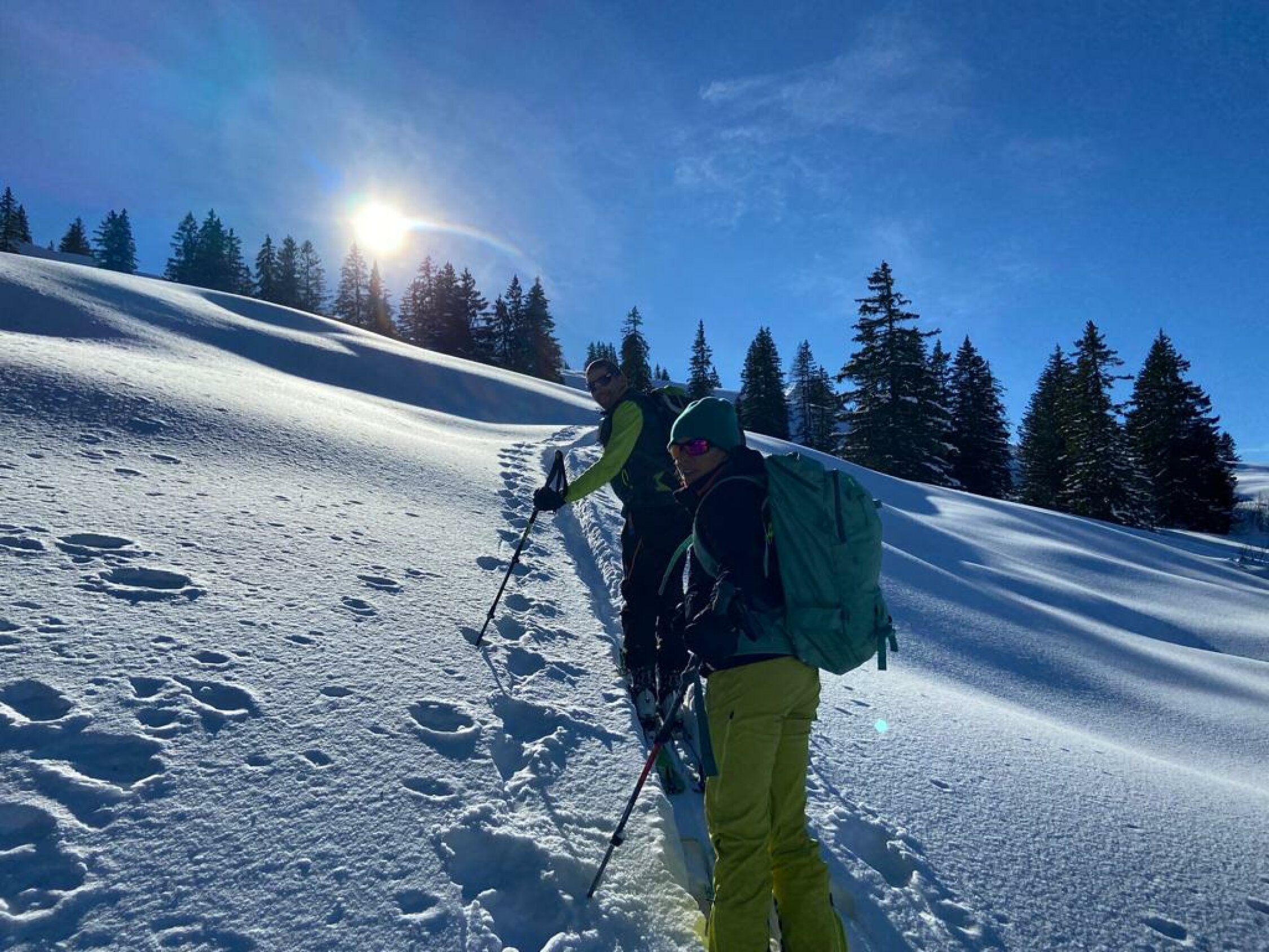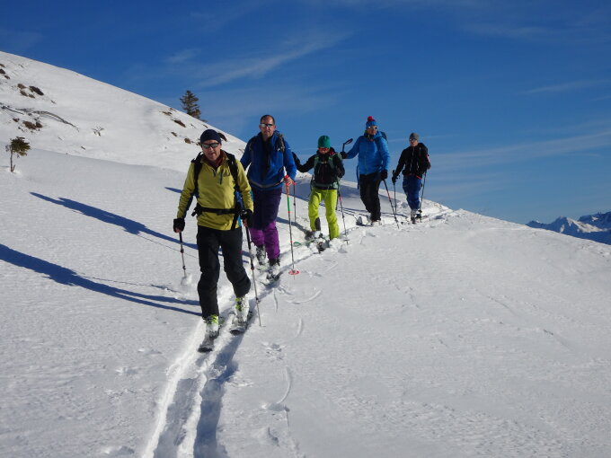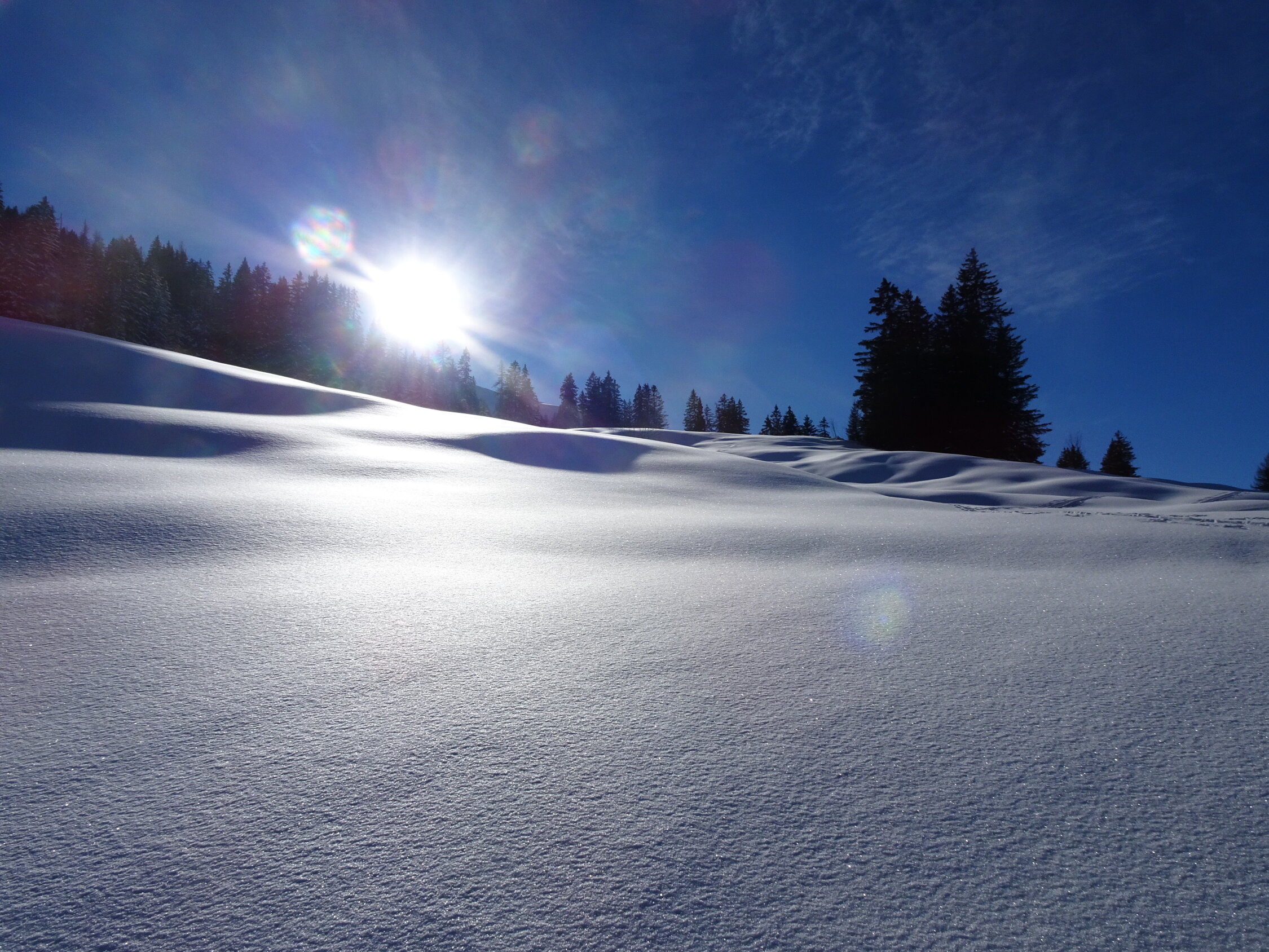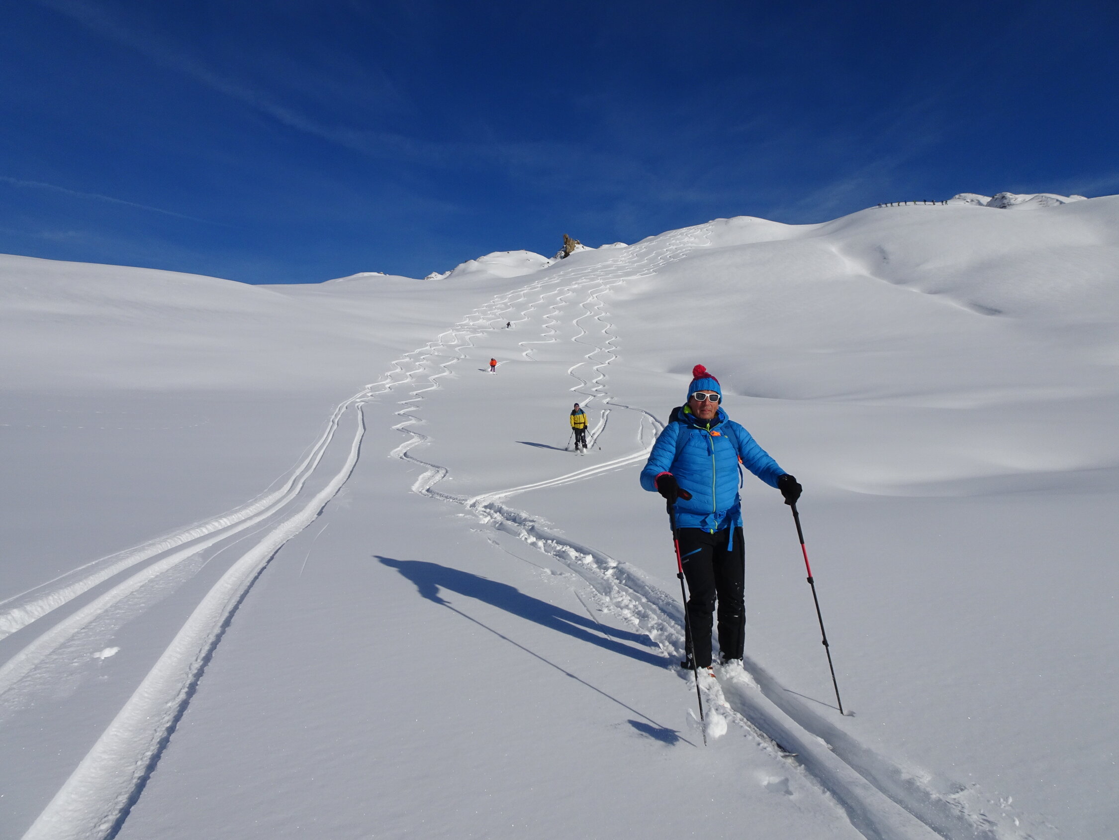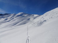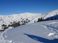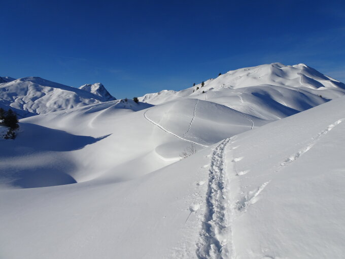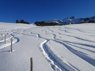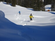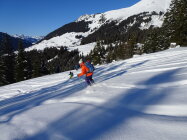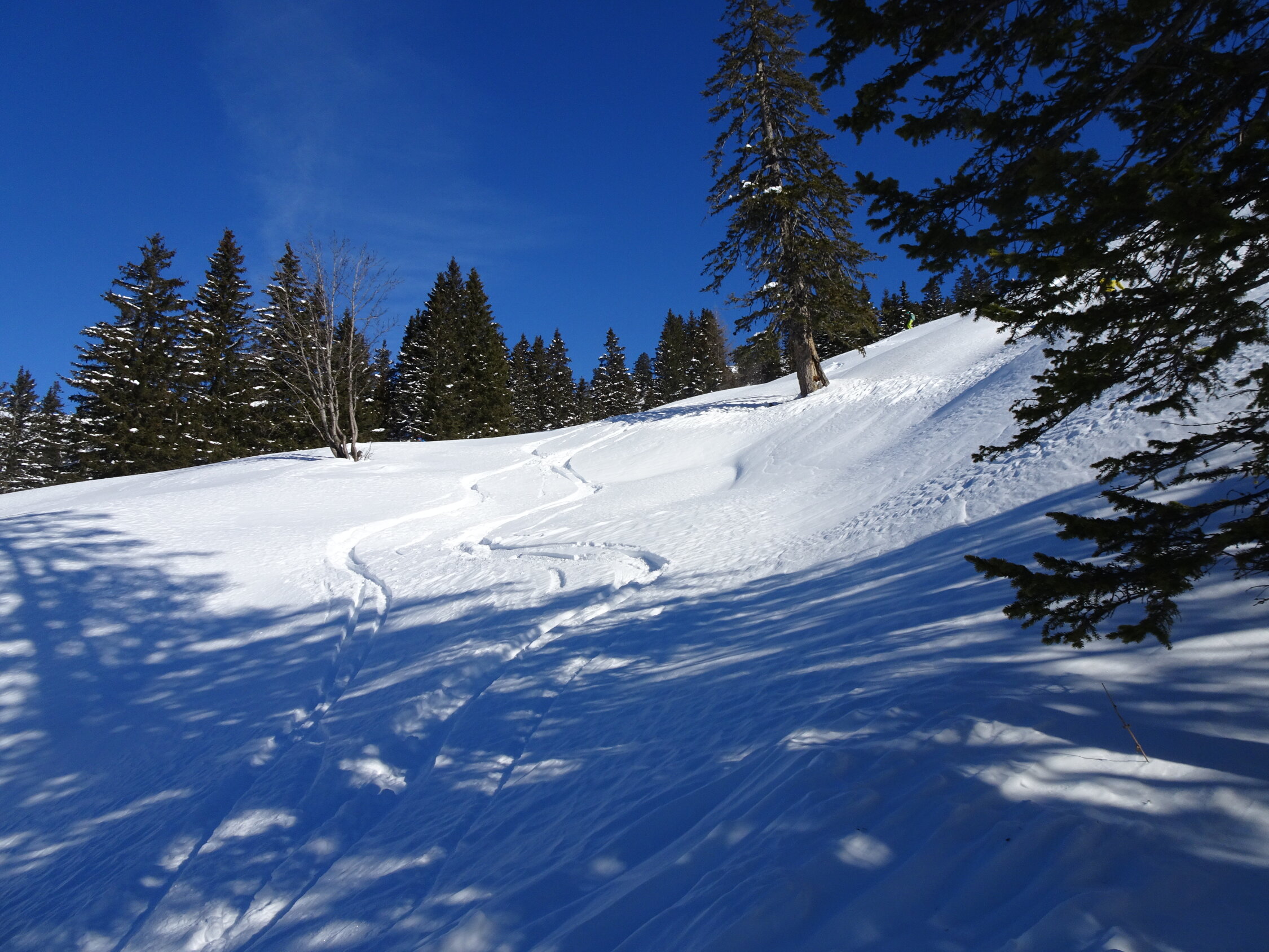 Schnee: nur bei der Abfahrt von der Fürflue bis unterhalb Alp Obers-Blatti etwas Windharsch, ansonsten überall Pulver pur, die letzten ca.50Hm ohne nennenswerte Unterlage