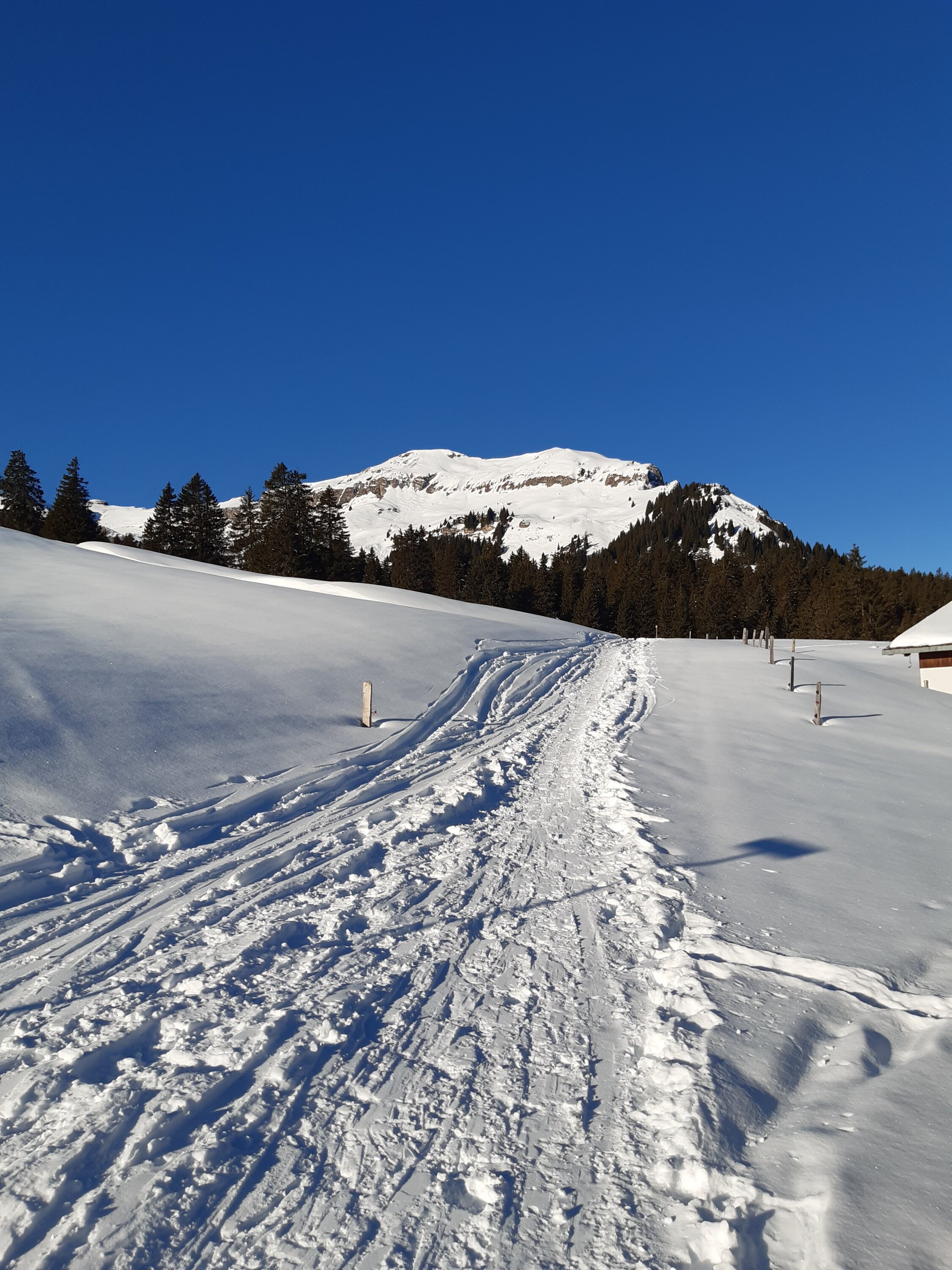 Bestes Wetter, unten bis Schwarzenberg eher wenig Schnee dank Wiese kann man trotzdem gut fahren wenig Bodenkontakt, oberhalb Schwarzenberg sehr gut