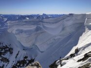 Abfahrt über Gletscher war ok, etwas Kruste, bischen von Lawinenresten, teilweise verblasen.