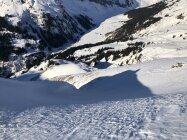 Abfahrt: Zuoberst wunderbar, dann allerdings teils leicht windgedeckelt. Der Rücken bei der 'Hirzegg' ist eng, kontrolliertes Abfahren ist hier Pflicht. Die Hänge runter von der Risetenalp wären wunderbar, wenn die Sonne nicht teilweise bereits angefeuchtet hätte. Deshalb nur ein 'gut'. Das Chrauchtal raus ging dann wieder super-effizient, man kommt praktisch ohne Stockeinsatz bis nach Matt.