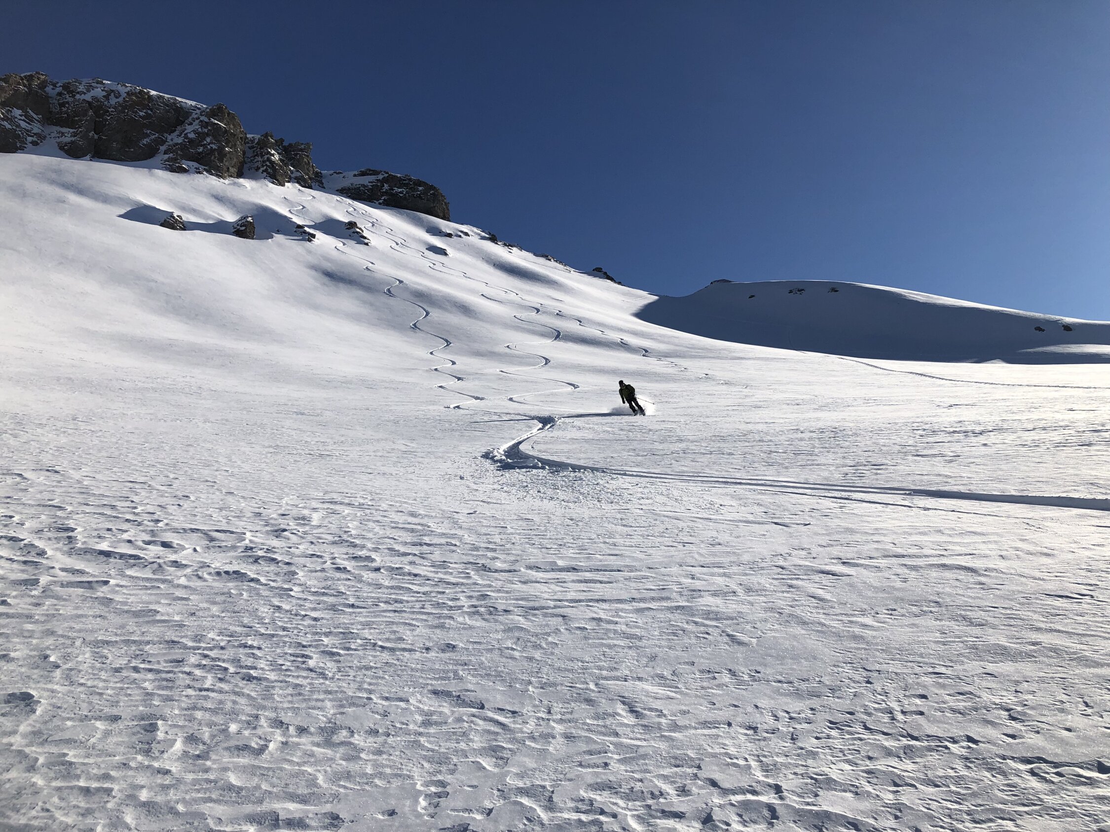 Eine ungewöhnlich lange und strenge Tour in grosser Abgeschiedenheit. Landschaftlich wunderbar, erfordert aber wirklich solide Skills in der Navigation und der Interpretation des Geländes. Skifahrerisch zu empfehlen ist die Nordabfahrt, welche ein paar sehr schöne Hänge bietet.