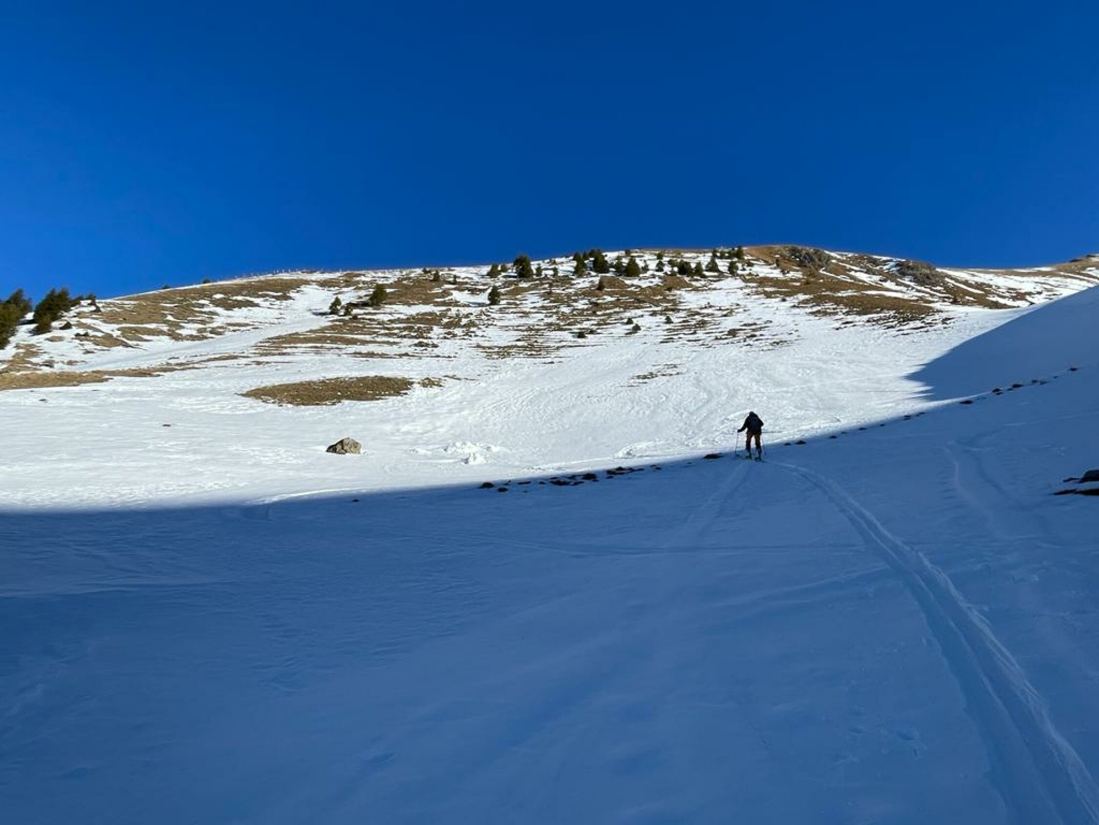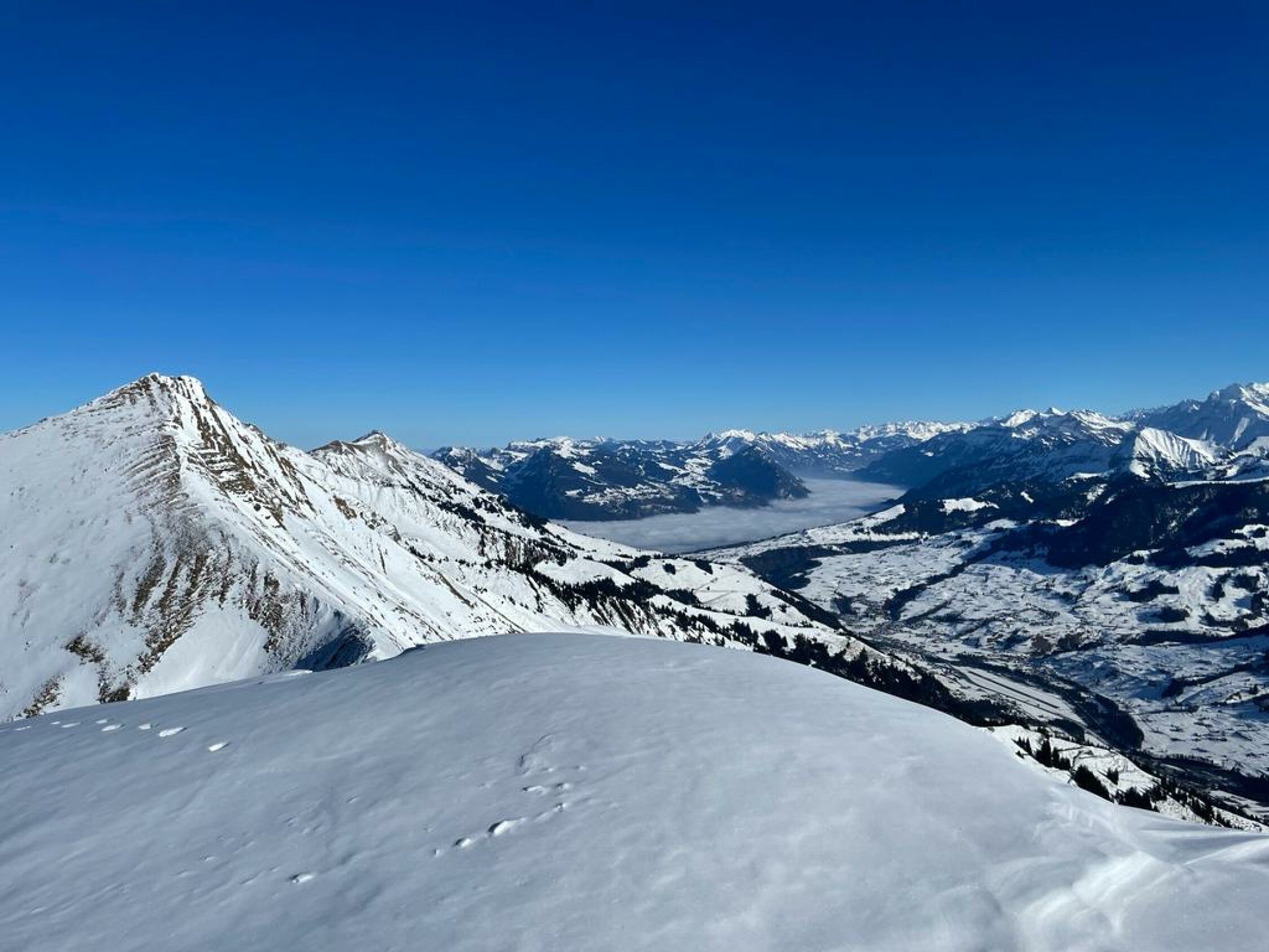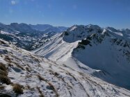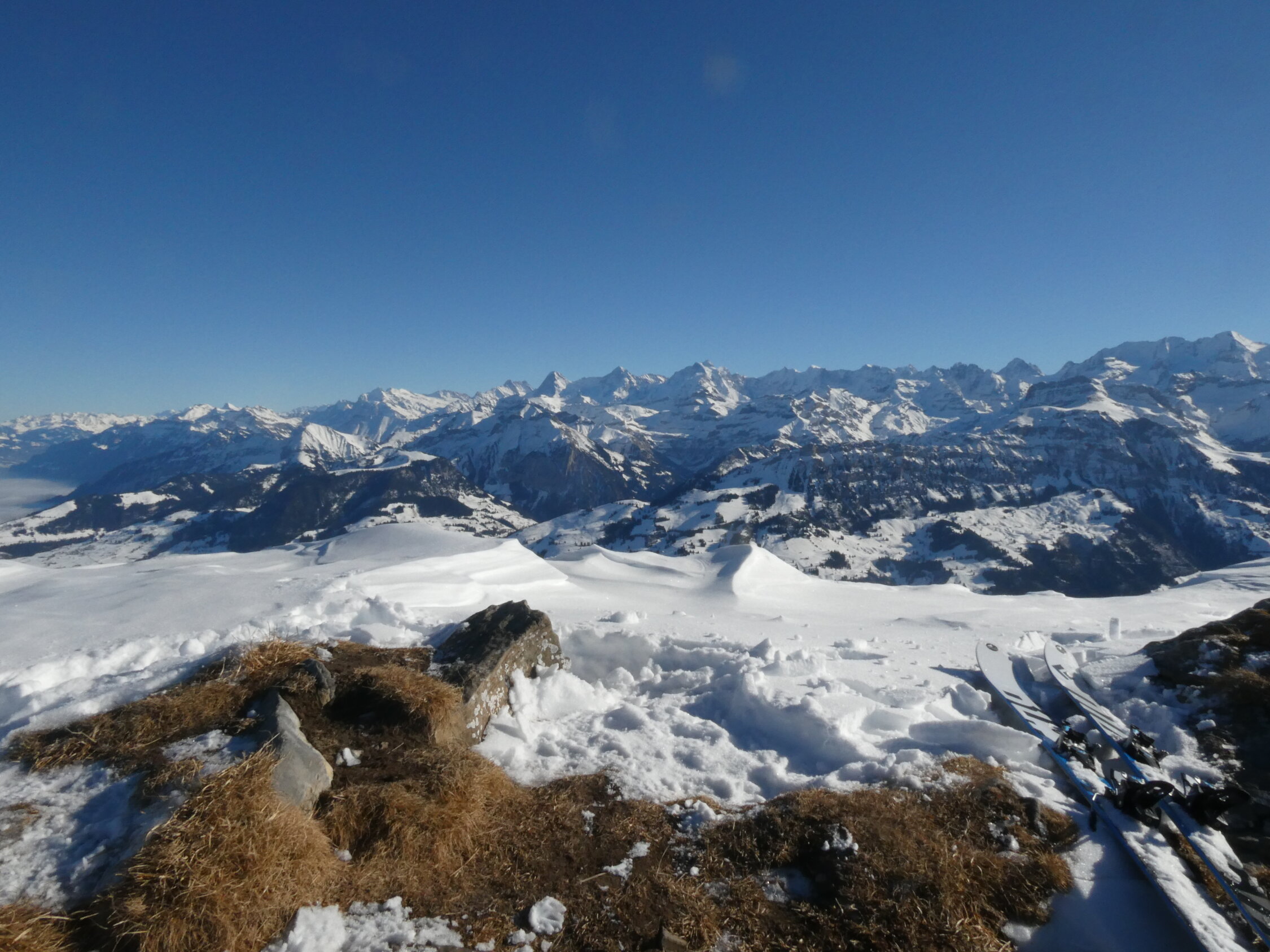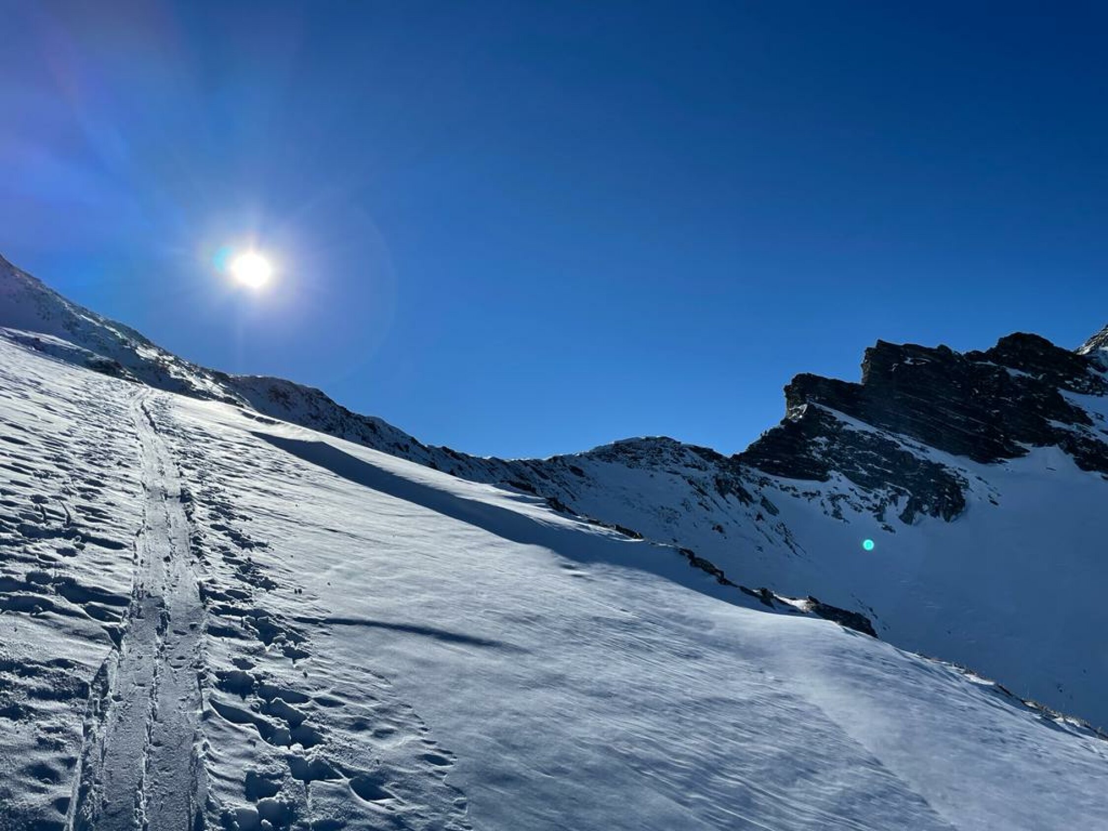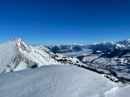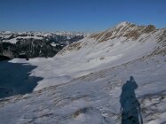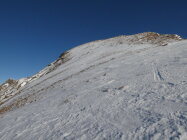 Nur im obersten Teil der Nordabfahrt noch Pulver. Sonst Wind- oder sonnenumgewandelter Schnee.Allgemein wenig Schnee.
