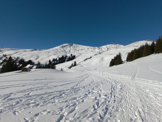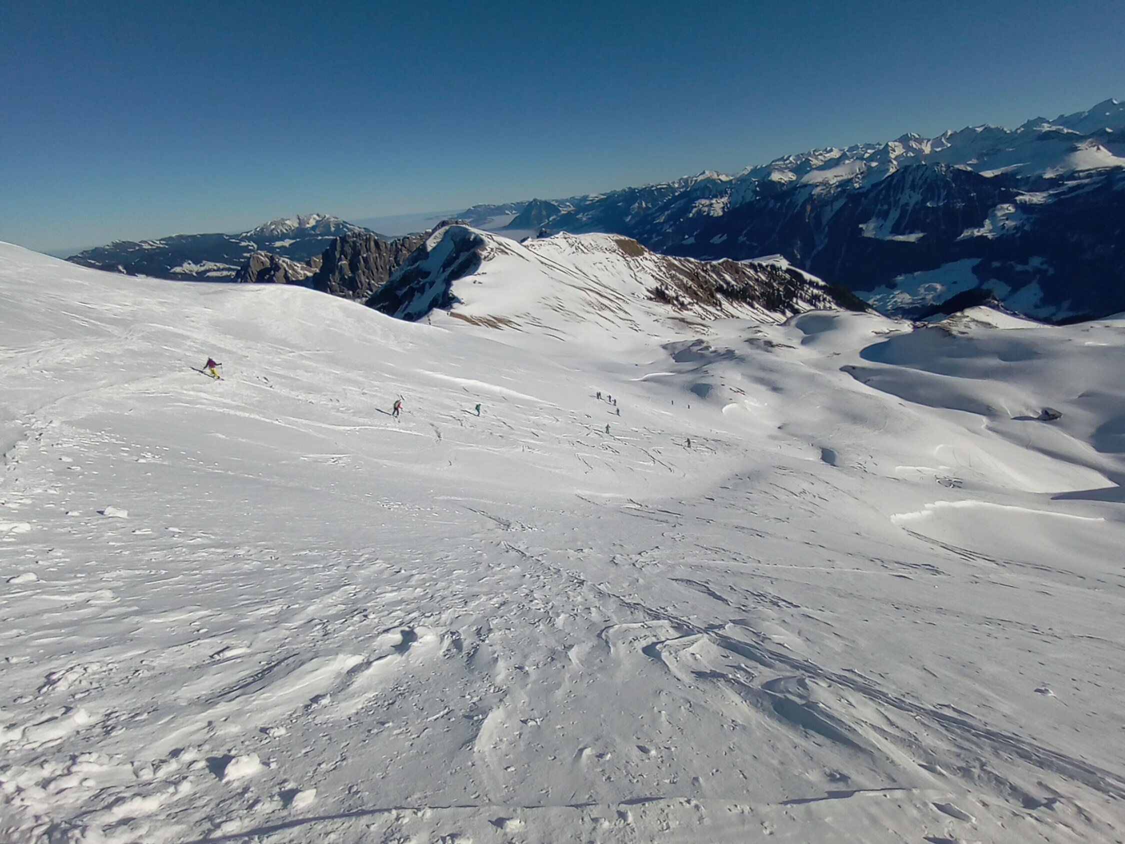 Die Schneequalität ist ganz unterschiedlich und je nach Exposition von Hartschnee bis Pulverschnee.