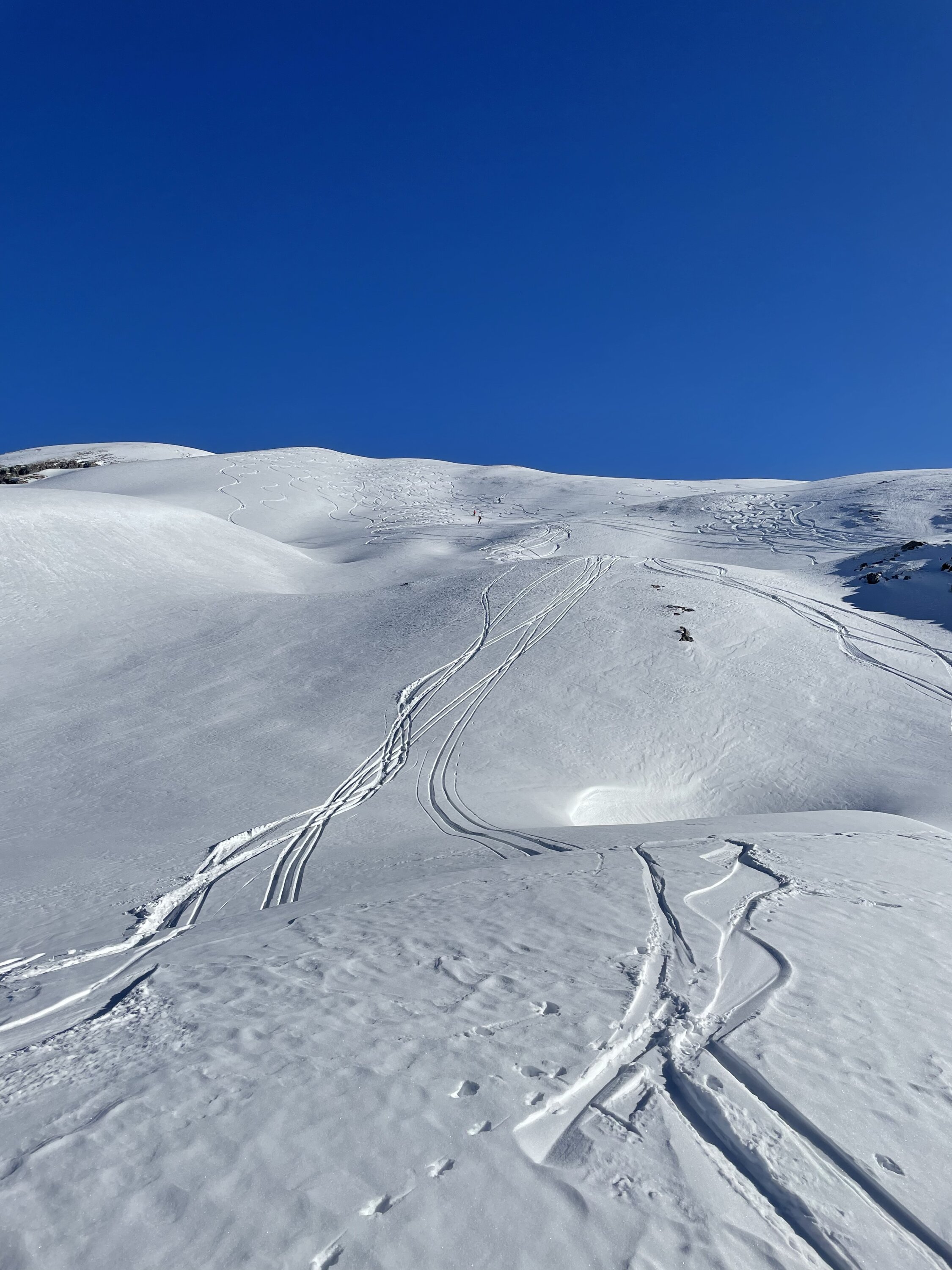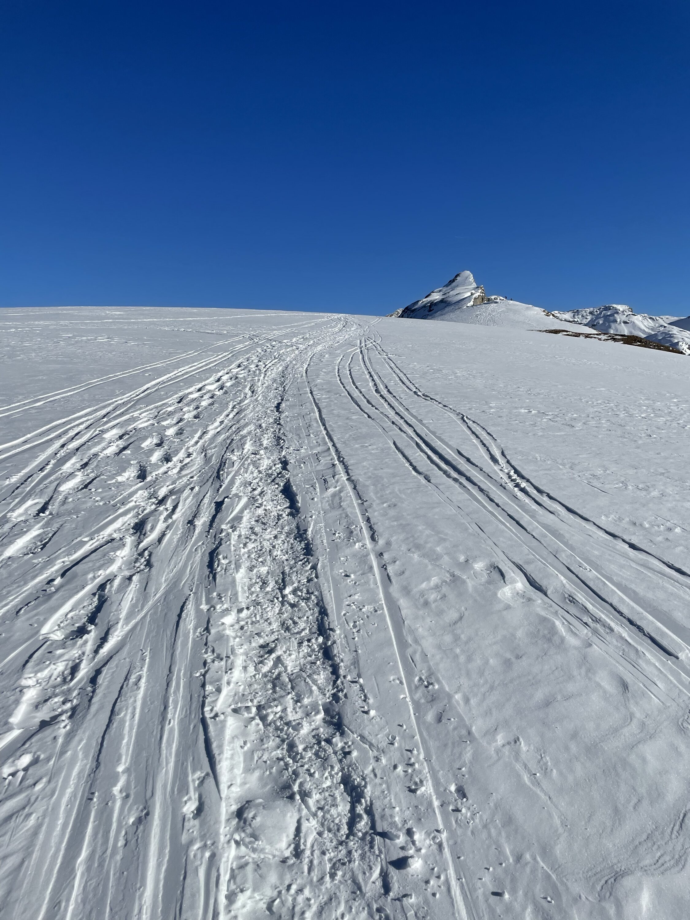 Gipfel, Sparer kamen dann hundertschaften… die Spur sollte me Weile halten… deckel in den südhängen, in den andere Expositionen gibts noch Pulver.