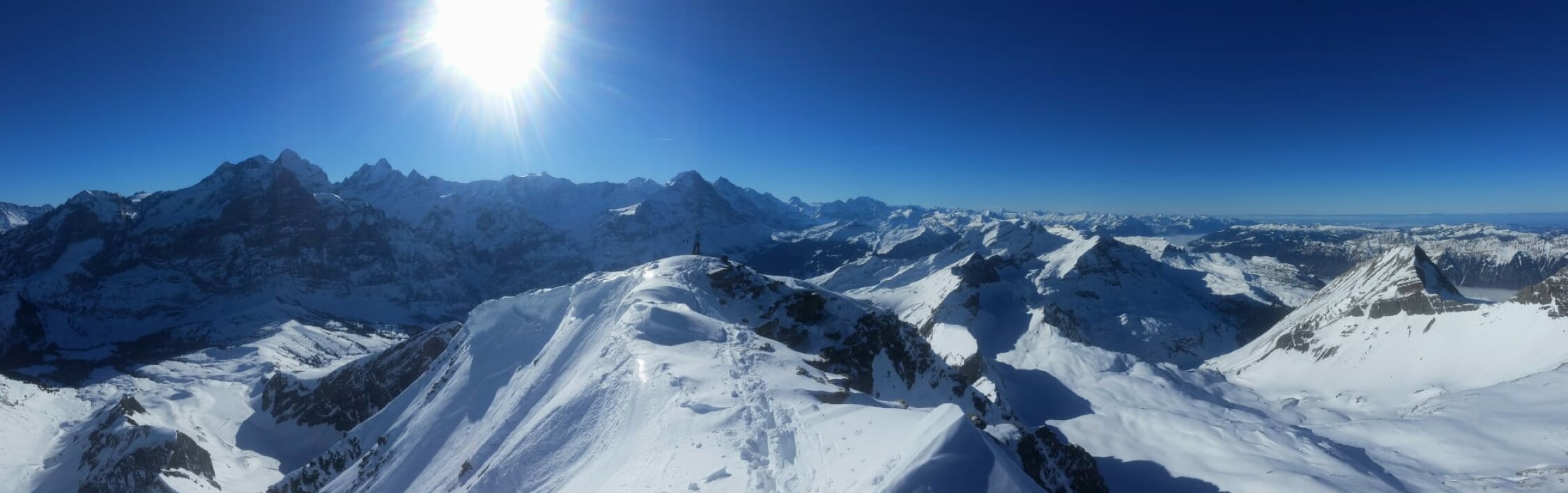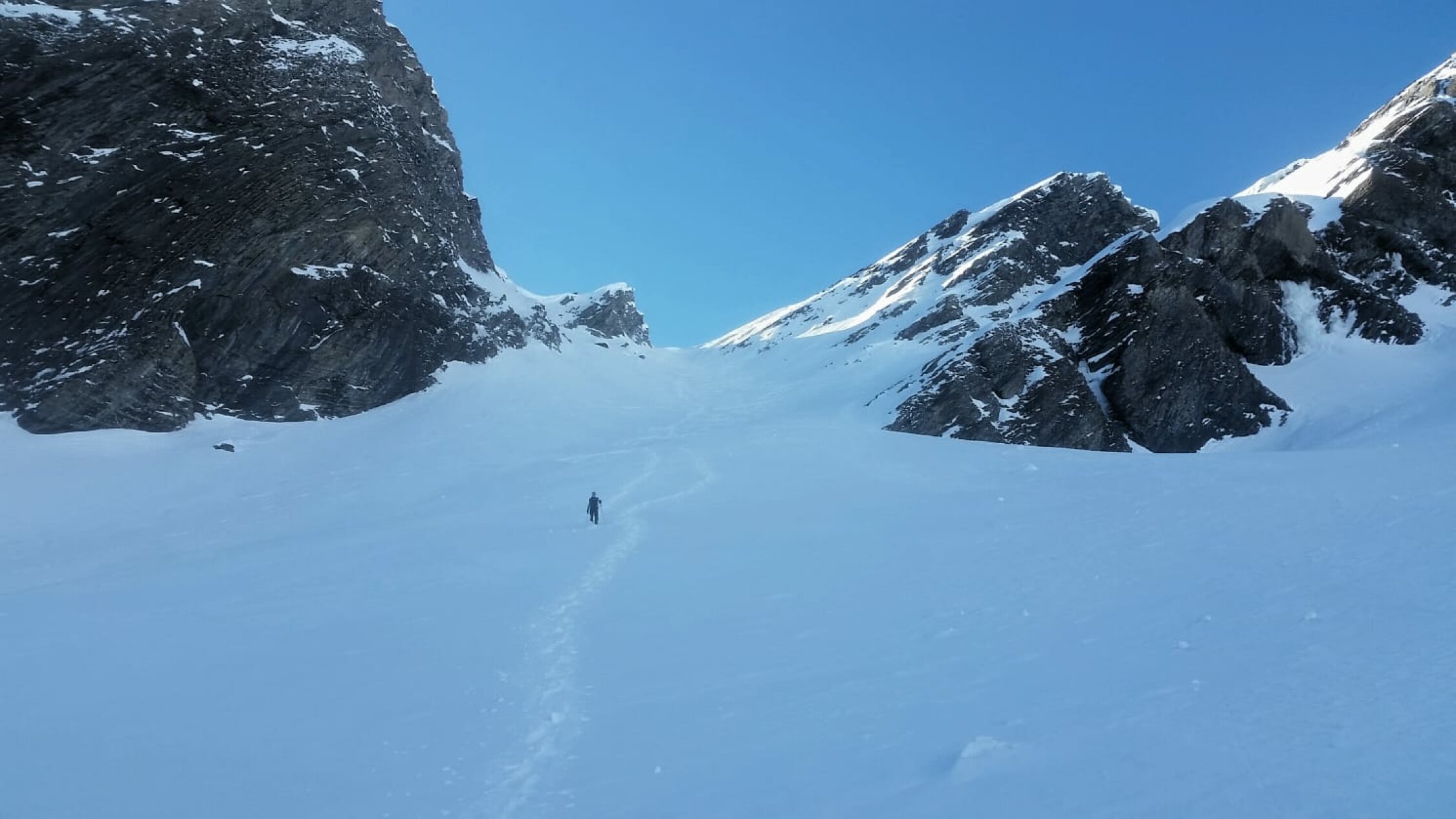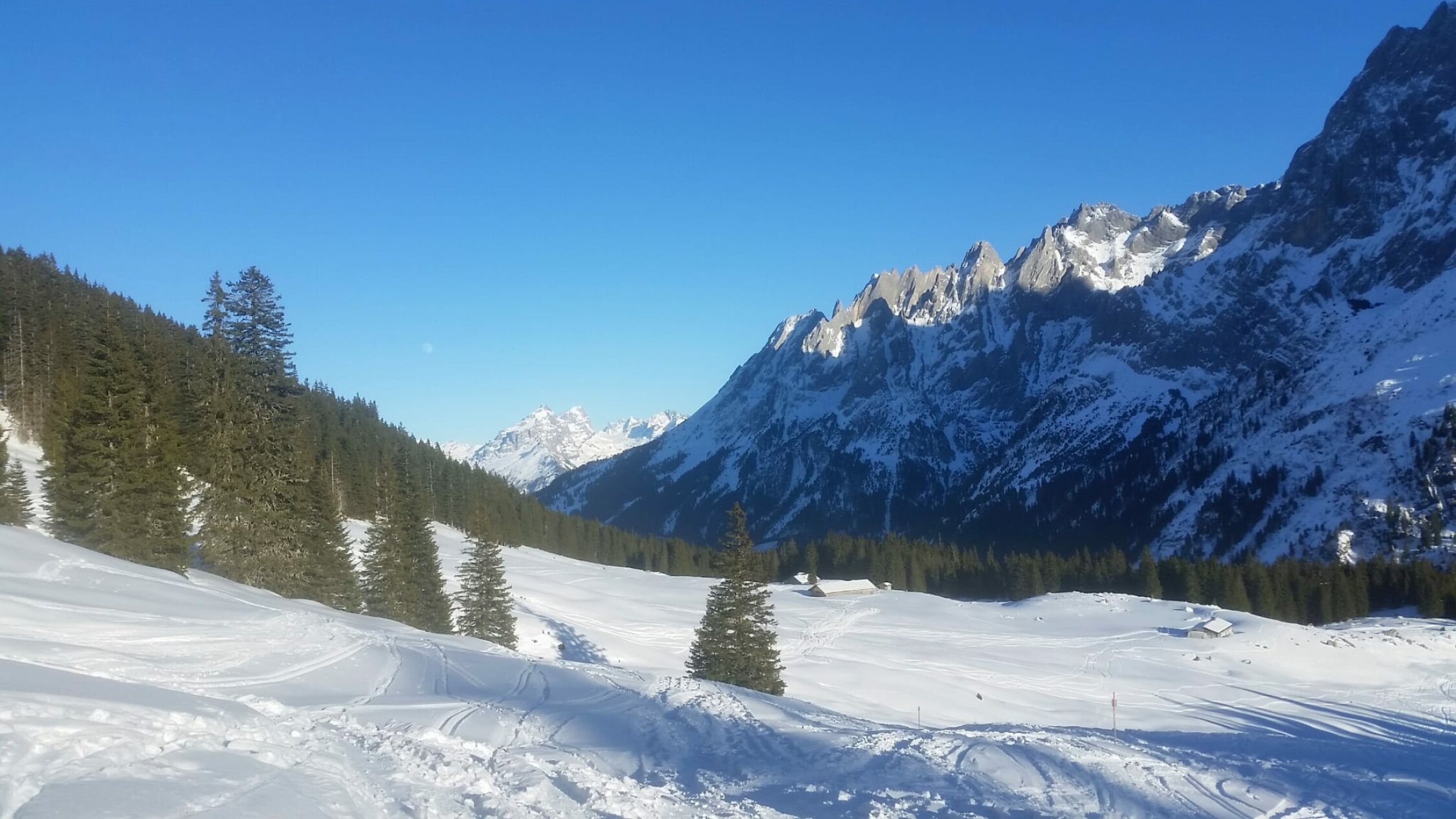 Via Gummital und Couloir nördlich Gemschberg auf den Südgrat und hoch zum Gipfel. Schneeschuh-Depot kurz vor Ausstieg aus Couloir. Dann ca. 30HM ca. 40-45° steil in griffigen, festem Schnee hochgestiegen. Grat tlw. abgeblasen und gut zu begehen. Oben mässiger Nordwind. Abstieg via Aufstiegsroute. Im Couloir und in den flacheren Partien bzw. im Wald tlw. noch schöner Pulver.