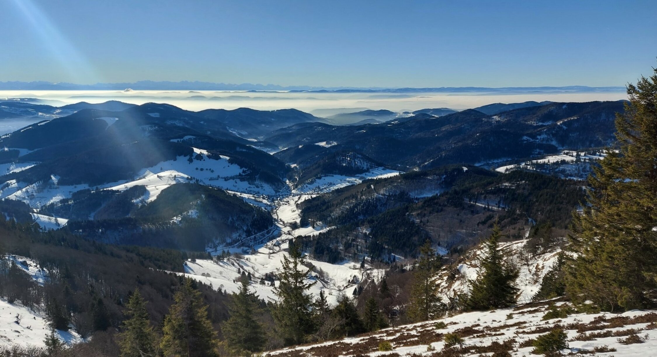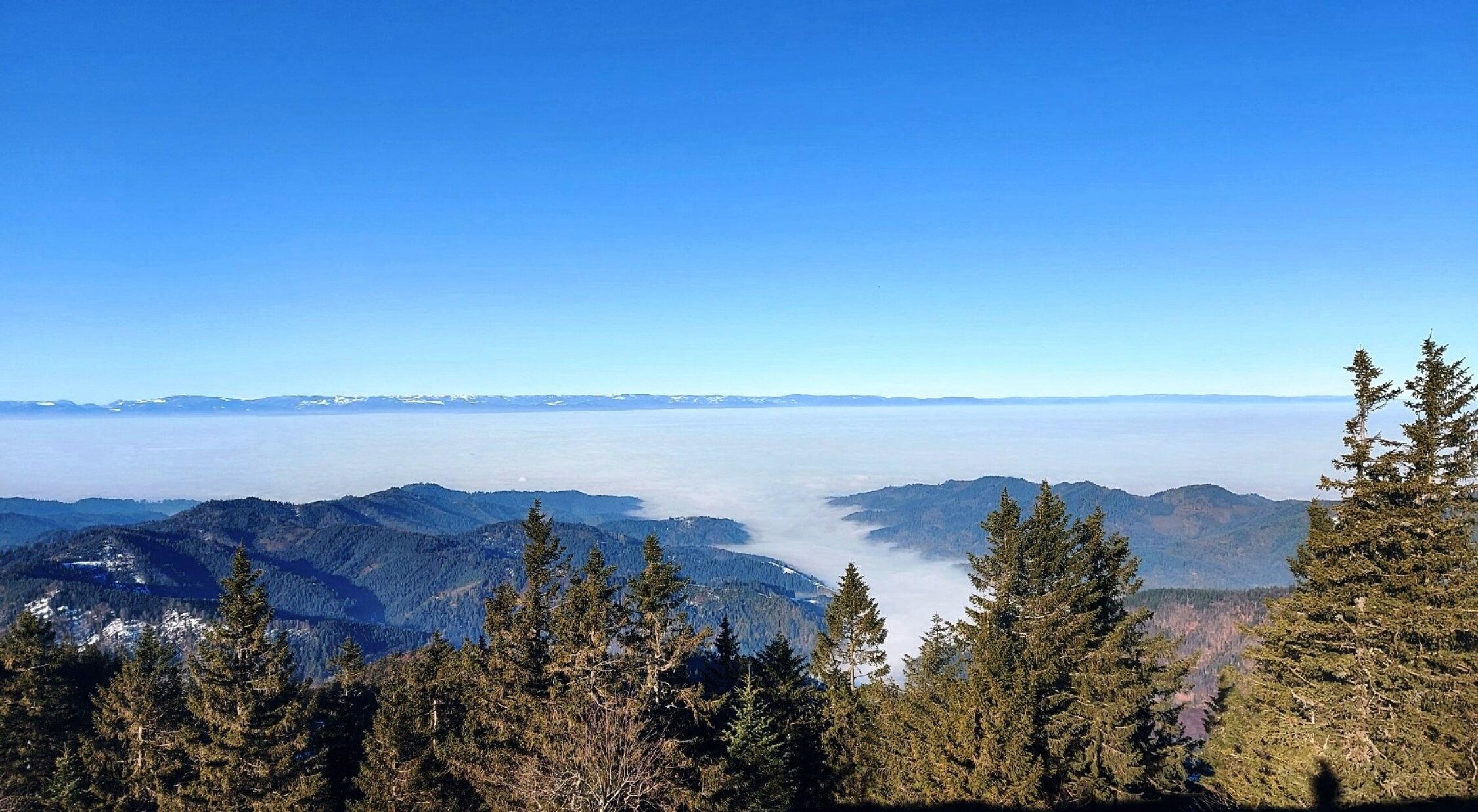 Es war das 3. Mal bei Touren im Schwarzwald, dass wir den Mont Blanc sehen konnten, der immerhin 233 km entfernt liegt.