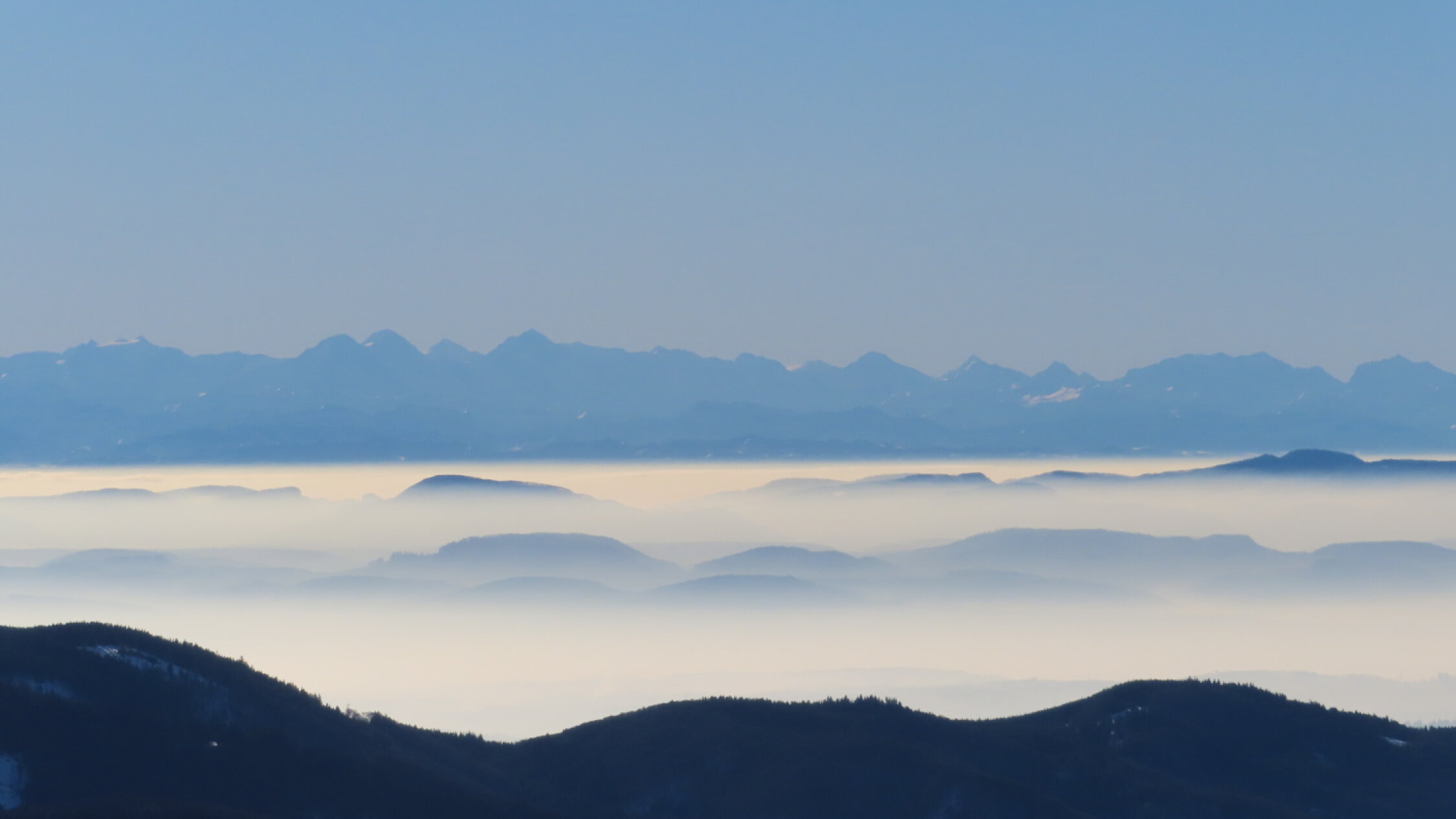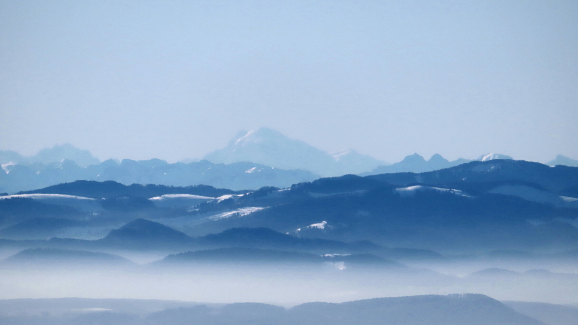 Die Fernsicht war prächtig. Die Dunst-/Hochnebeldecke über dem CH-Mittelland sorgte für eine schöne Stimmung. Das Alpenpanorama vom Säntis über den Mont Blanc bis zum Dent du Midi war einzigartig.