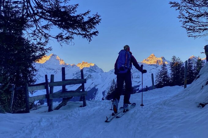 Start bei Töniberg Parkplatz ca 7:15, die Strasse / Weg zur Alp Mittelstafel ist perfekt zu gehen, es liegt genug Schnee. Ab der Ebebe ab Raminer Matt hat es unterdessen zwei Aufstiegsspuren, eine direkt aber steiler, die rechte ein paar Spitzkehren :-). Der Grat von 2288 zu 2412 war die Spur teilweise glassig, rutschig. Die Querrung unter dem Foostöckli lies Freude aufkommen, schön pulvriger Schnee, was für die Abfahrt gutes verspricht!! Das Couloir kurz vor dem Gipfel kann (noch) gut den Ski begangen werden.