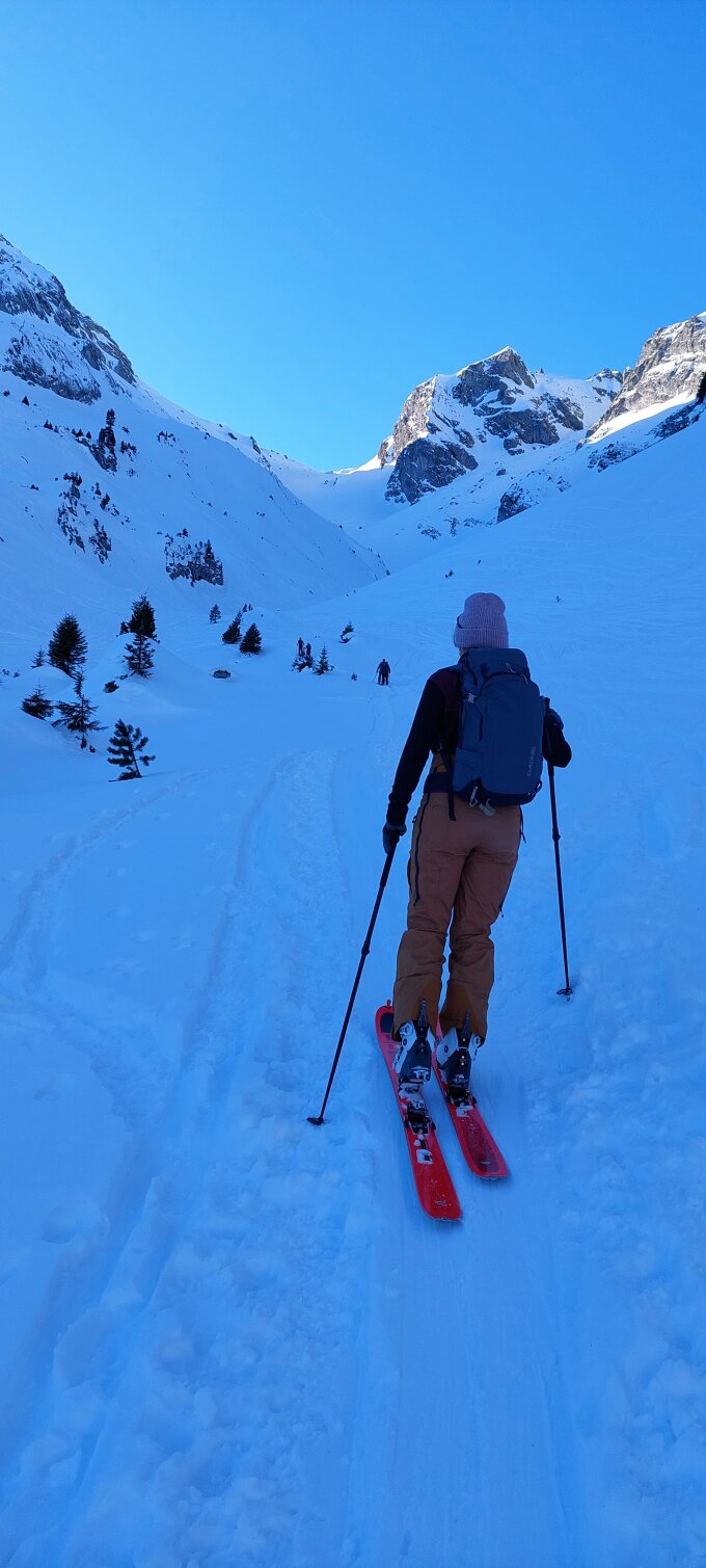 Dank dem schönen Wetter mit angenehmer Temperatur und dem noch gut zu fahrenden Pulver war dies eine lohnende Tour.