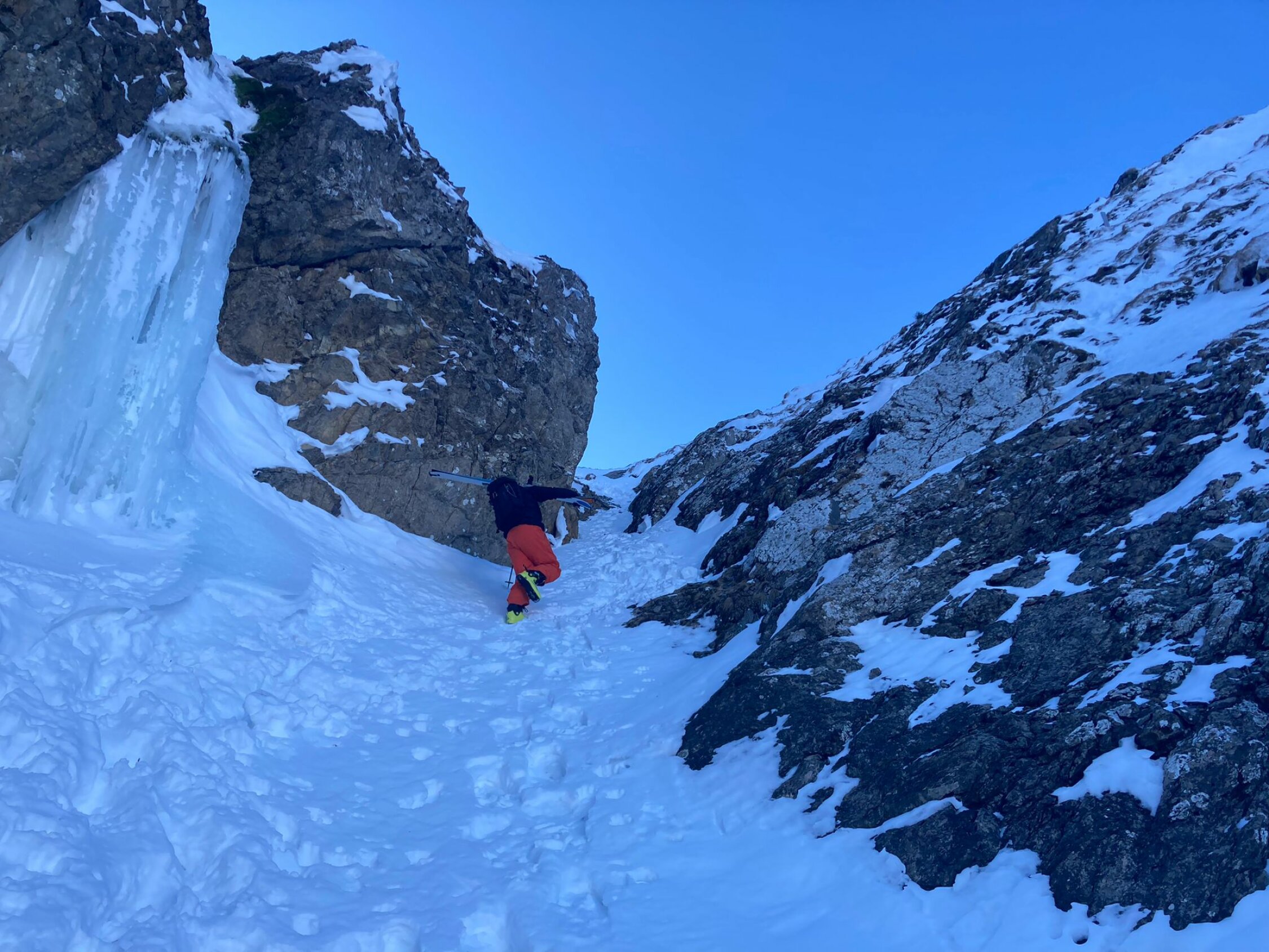 Schnee oben. Pulver zum Teil etwas windgepresst. Durchs Bachtäli sehr schön, wegen Steinen war aber stellenweise vorsichtiges Fahren angesagt.