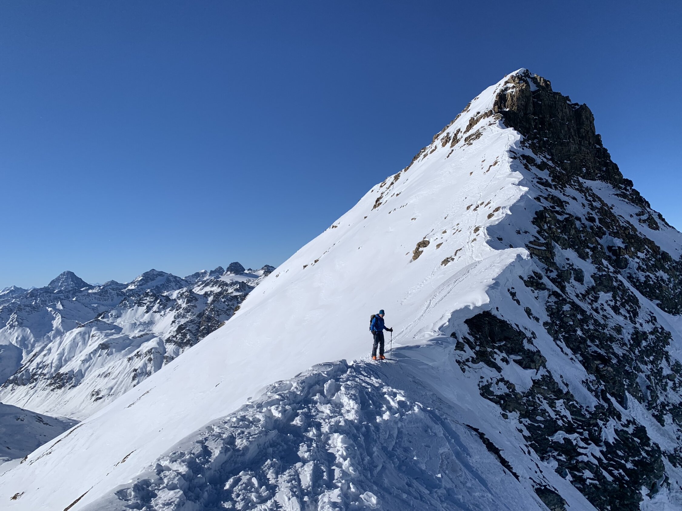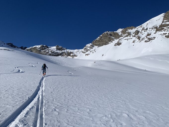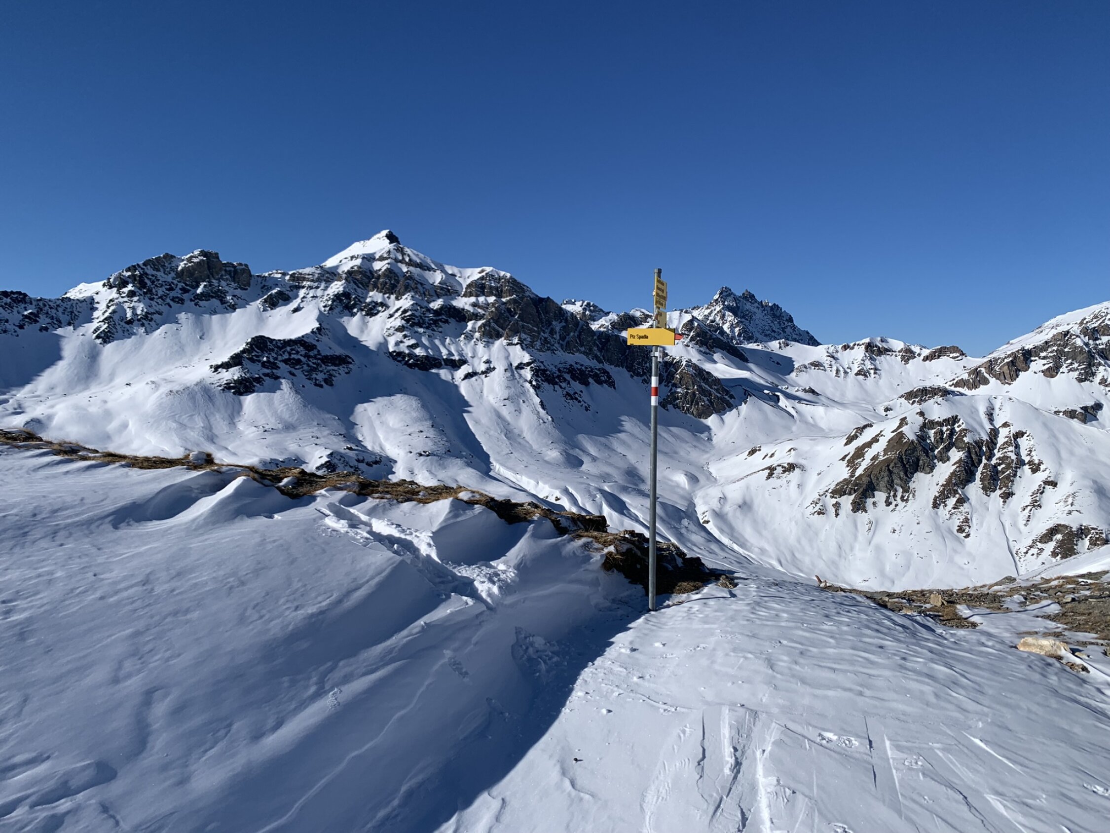 Ganze Route gute Verhältnisse. Gipfelgrat mit Trittschnee, Abfahrt bis Tiral ( ca 2400) meist Pulver. Aufstieg zur Fuorcla Spadla bereits teilweise gespurt, Abfahrt nach Sent dann wenig erfreulich, etwas von allem, aber sehr unregelmässiger Schnee und für Sulz ist es noch zu wenig warm. Letzter Abschnitt dann auf der Traumpiste nach Sent.