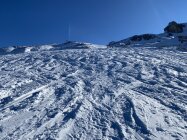 Für die Jahreszeit liegt viel zu wenig Schnee. Deshalb muss man bei der Wahl der Abfahrtsroute vorsichtig sein. Deshalb kein Ausgezeichnet in der Gesamtbewertung.