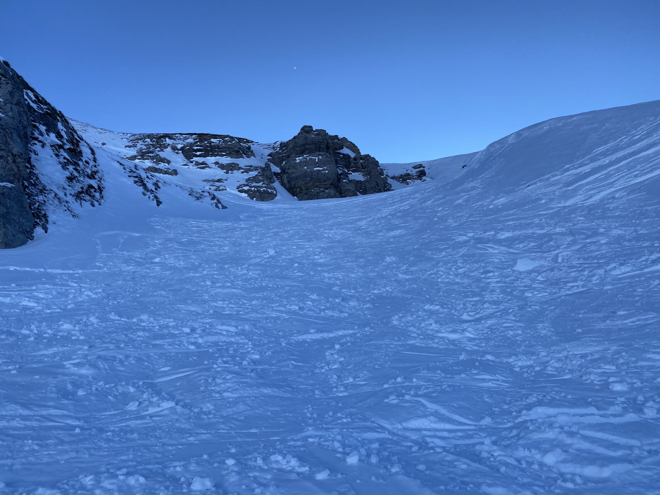 Vorläufig genug Schnee um gut hoch und wieder herunter zu kommen. Für Varianten braucht es aber noch reichlich Nachschub.