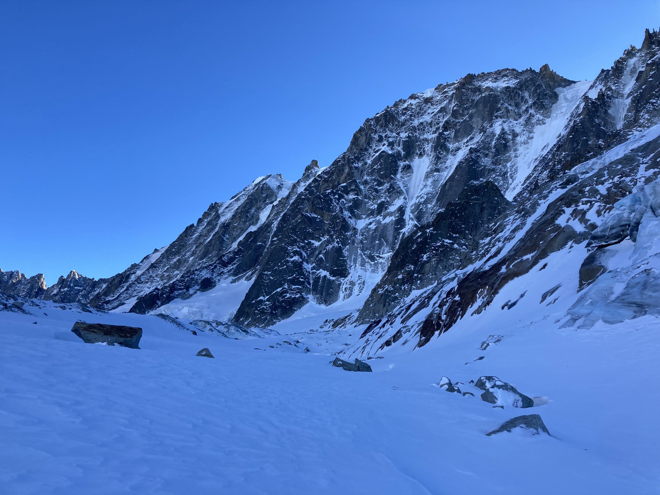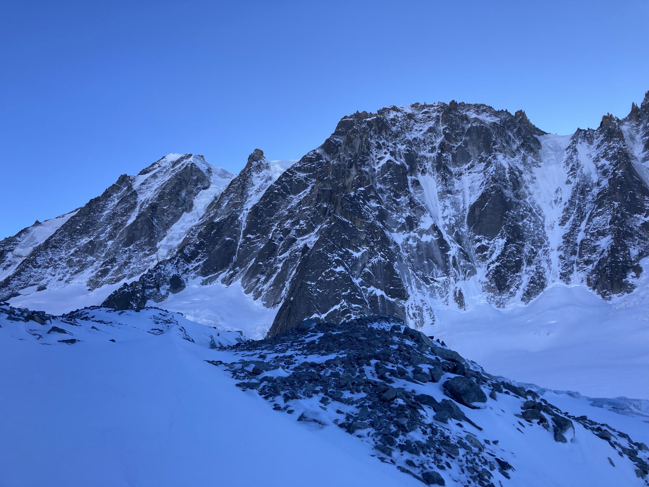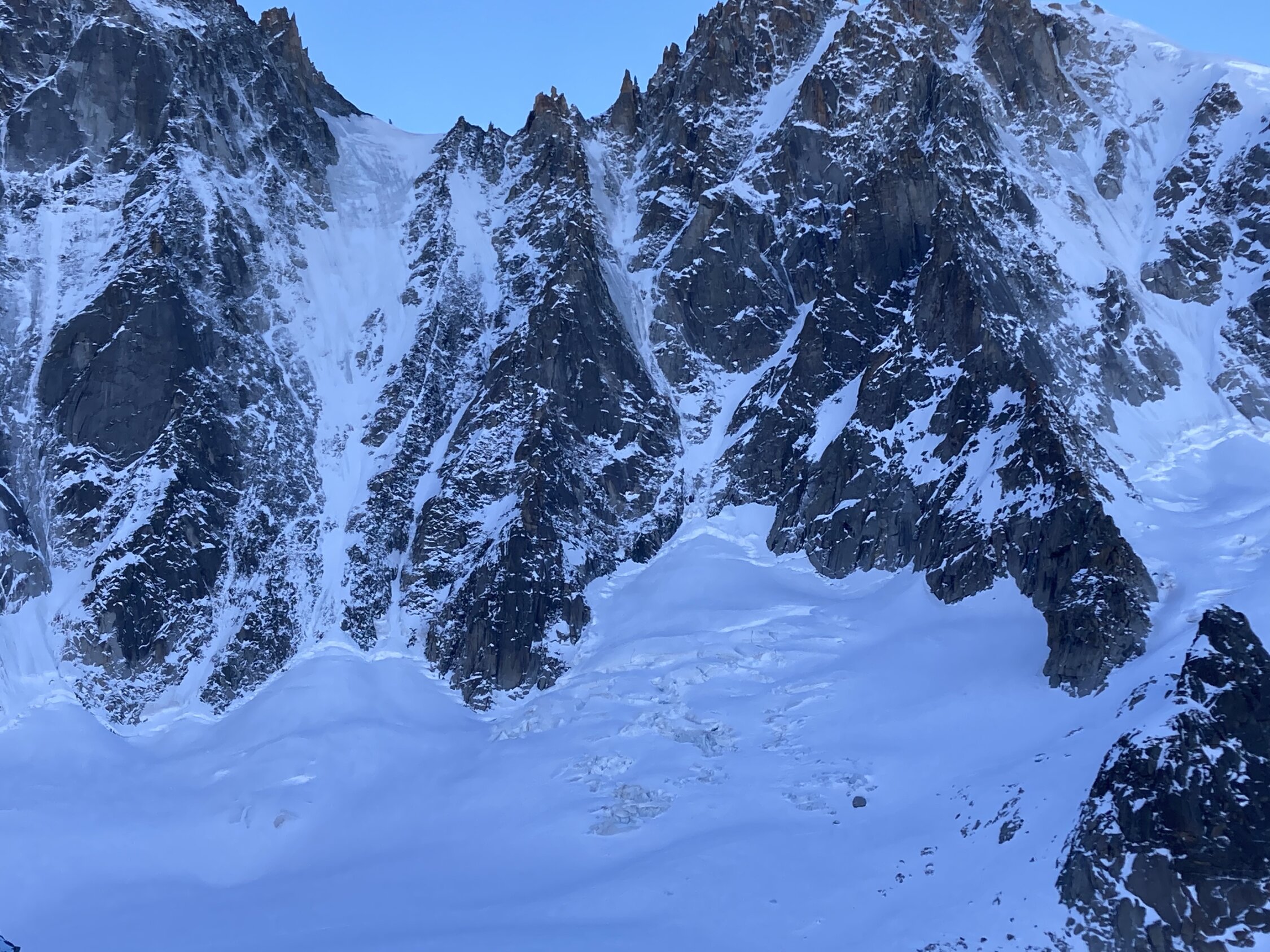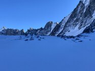 Insgesamt sind die Nordwände im Argentière Kessel eher eisig/ trocken, der Wind hat wohl recht abgeräumt. Jorasses Nord auch eher eisig/ trocken.