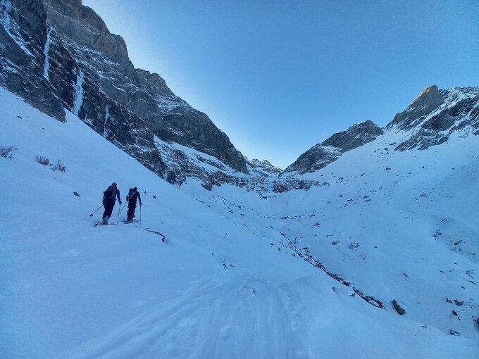 Ganze Tour gut gespurt, im sehr steilen Gipfelhang teilweise etwas rutschig/hart.