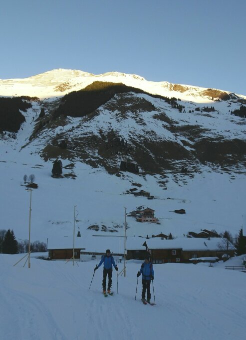 Wetter perfekt mit blauem Himmel und bester Fernsicht. Die Route liegt allerdings zu dieser Jahreszeit überwiegend im Schatten, erst bei den Gafierplatten auf etwa 2.400 m kommt man in die Sonne. Am Gipfel kalter Wind. Sehr ruhige Tour, im Gegensatz zu den umliegenden Gipfeln kaum Betrieb, auch nur vereinzelt Variantenfahrer aus dem Madrisaskigebiet.