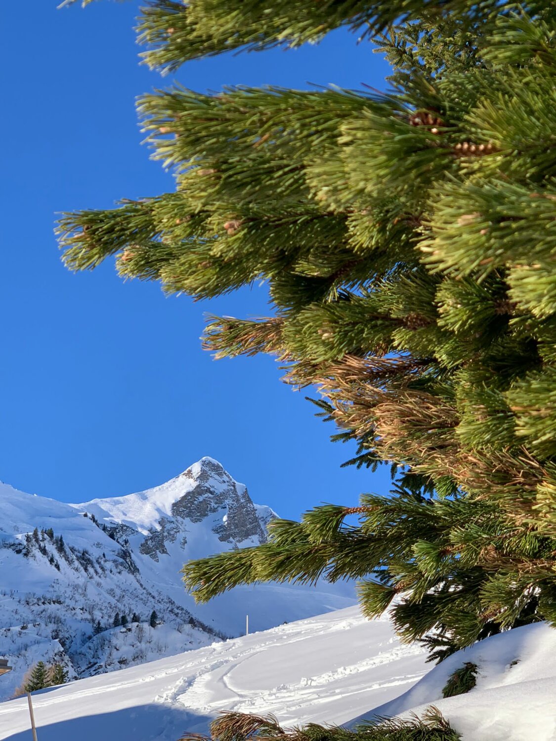 Schöner Pulverschnee, teilweise schon recht zerfahren. Wer sucht findet noch unverspurte Stellen.