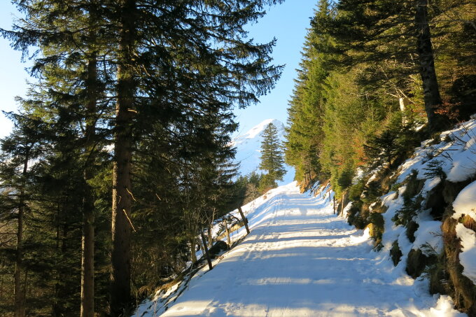 Auf dem Waldweg vom Berghaus Malbun zum Untersäss Pt. 1490 m durchgehend hartgepresster Schnee. Die Aufstiegsspur ab Untersäss führt über teils windgepressten aber auch weichen Schnee. Für den steilen Durchstieg zur Felsstufe sind Harscheisen empfehlenswert. Die Abfahrt über die Felsstufe ist wahrscheinlich vereist. Auf der Abfahrt gleiche Schnee Verhältnisse wie beim Aufstieg. In Schattenhänge hat es noch Pulverschnee.