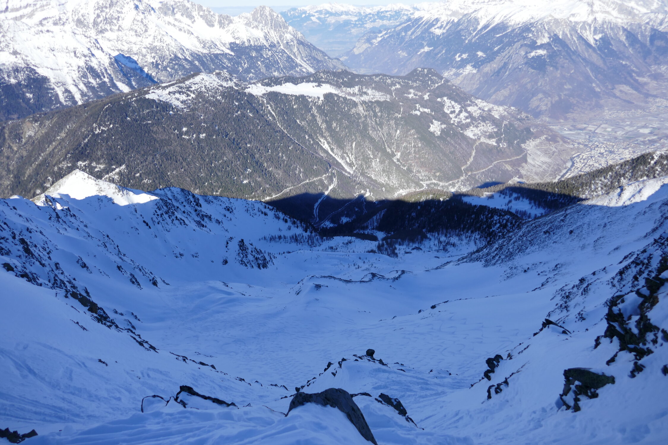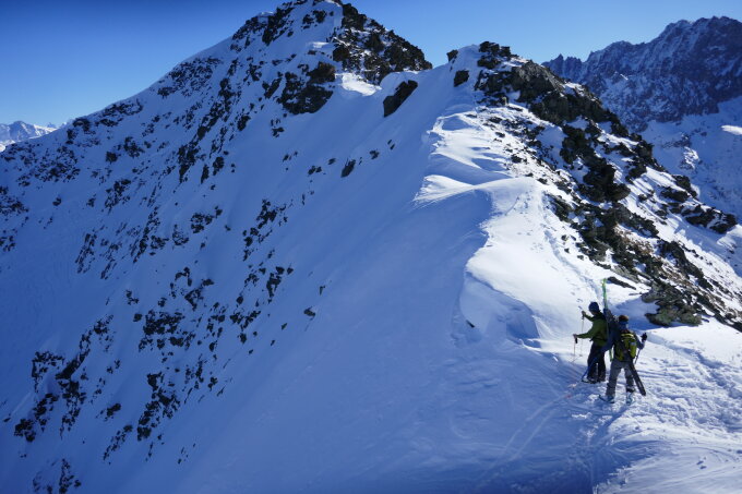 Es bieten sich verschiedene Couloirs hinunter nach Veudale an.