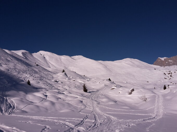 Oben genug Schnee, der aber nicht mehr pulvriger wird.