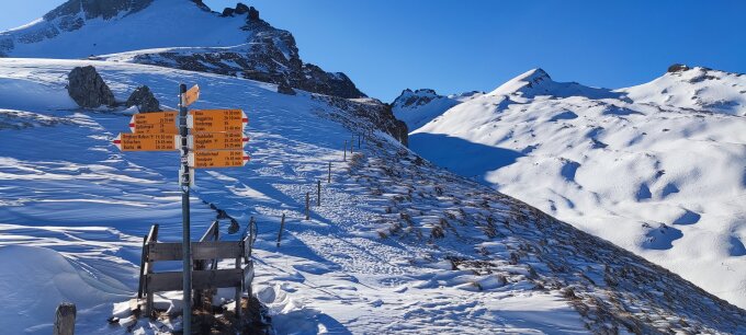 Izisgrat mit Fellen abfahrbar - Schnee: windverpresst mit vereinzelt schönen Passagen - je tiefer und (damit) windgeschützter je besser