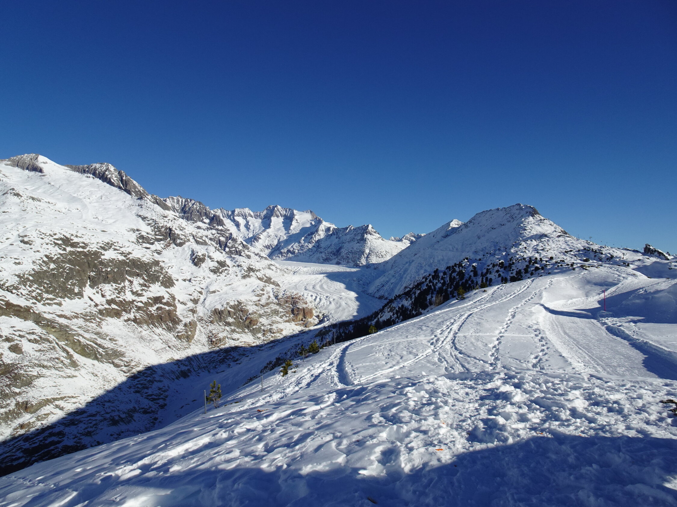 Der Winterwanderweg Moosfluh-Riederfurka-Riederalp ist wie immer perfekt unterhalten mit genügendem Abstand zu den Skipisten die nur ein paarmal gekreuzt werden müssen.