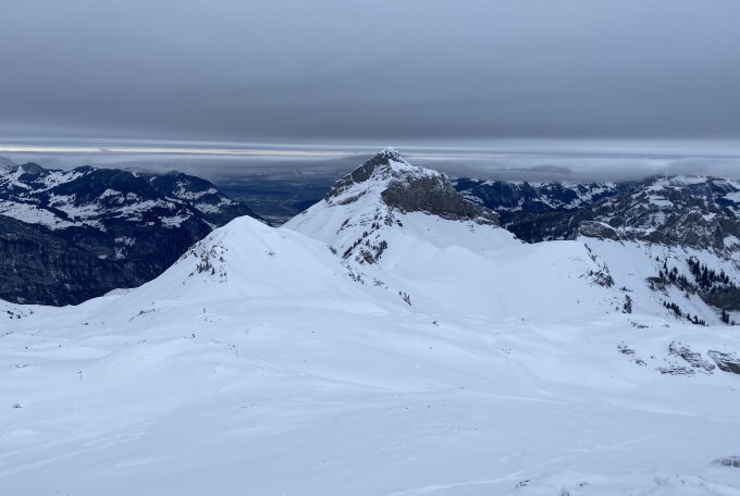 Ausgezeichnete Schneeverhältnisse von Rotärd nach Mürtschen, ebenso vom Alpbigligenstöckli. Bis Gäsialp top, ab dann abnehmend Schnee, Feindkontakte gehören dazu. Gerade noch knapp fahrbar bis Bus Haltestelle Hohrain. Von dort mit Bus zurück nach Näfels.