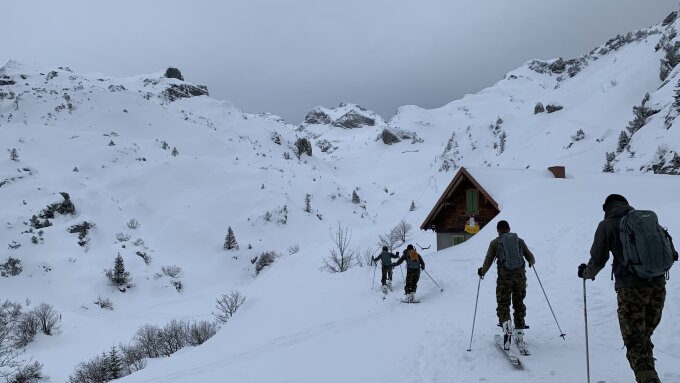 Im oberen Teil des Rosstock muss man wegen den Steinen etwas schauen. Wir hatten aber keinen Steinkontakt und wunderschönen Pulver bis runter zur Talstation der Chäppeliberg-Bahn. In der Talabfahrt haben wir einzig an 3 Stellen die Skis kurz getragen, damit wir nicht quer über steindurchsetzte Passagen rutschen mussten.