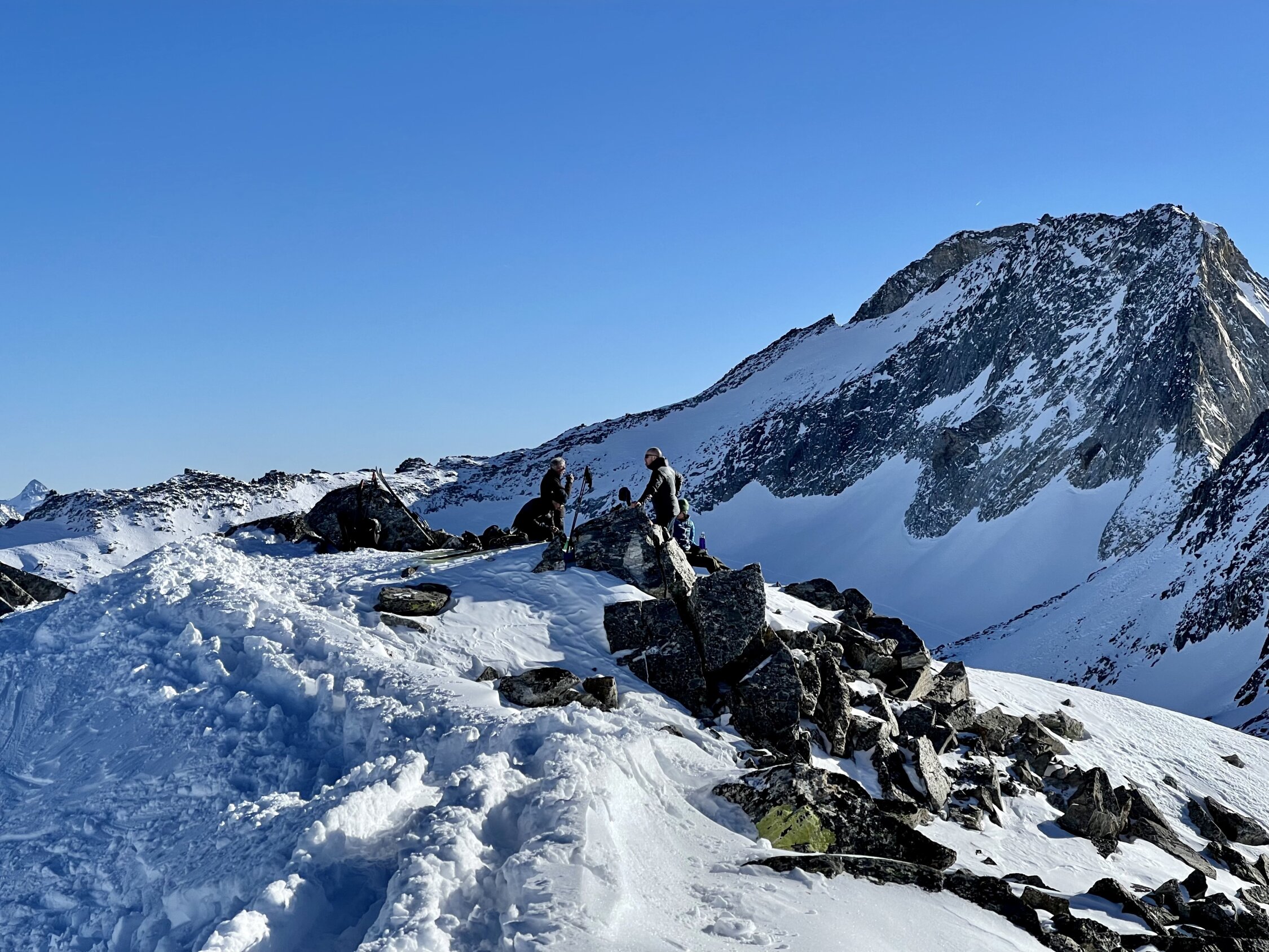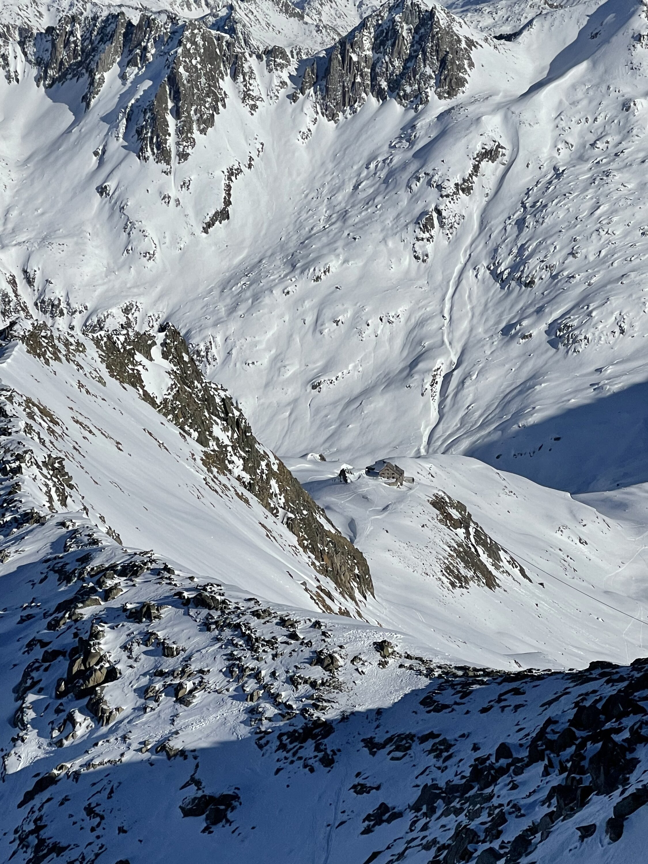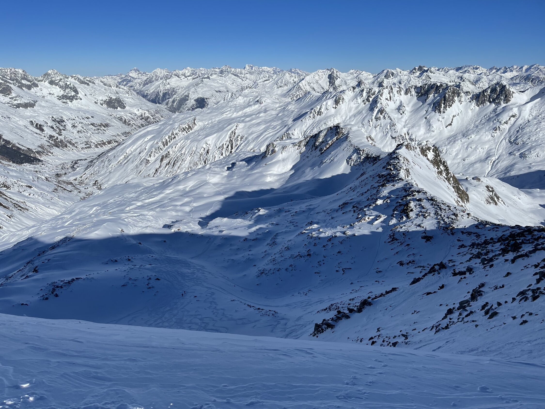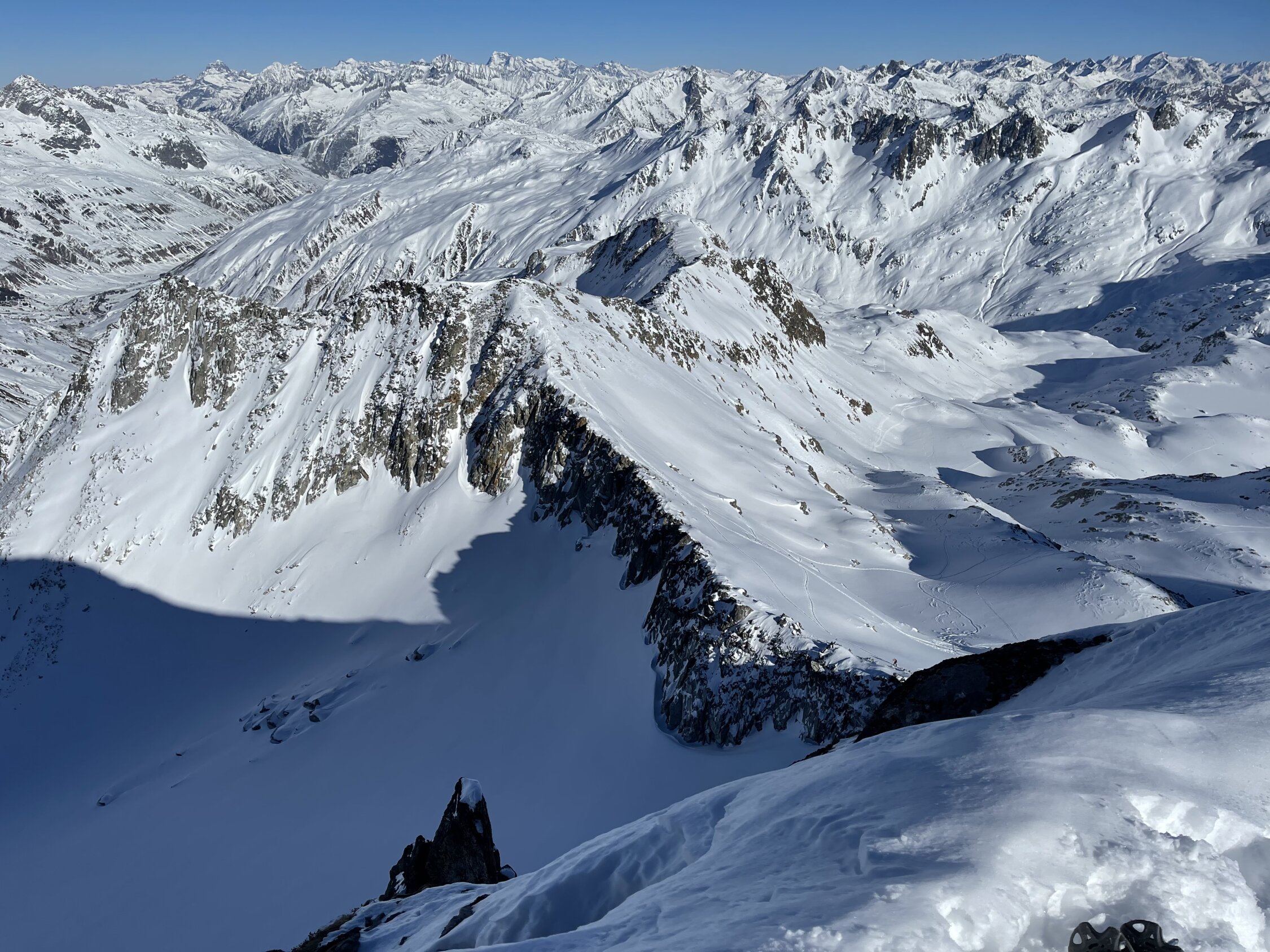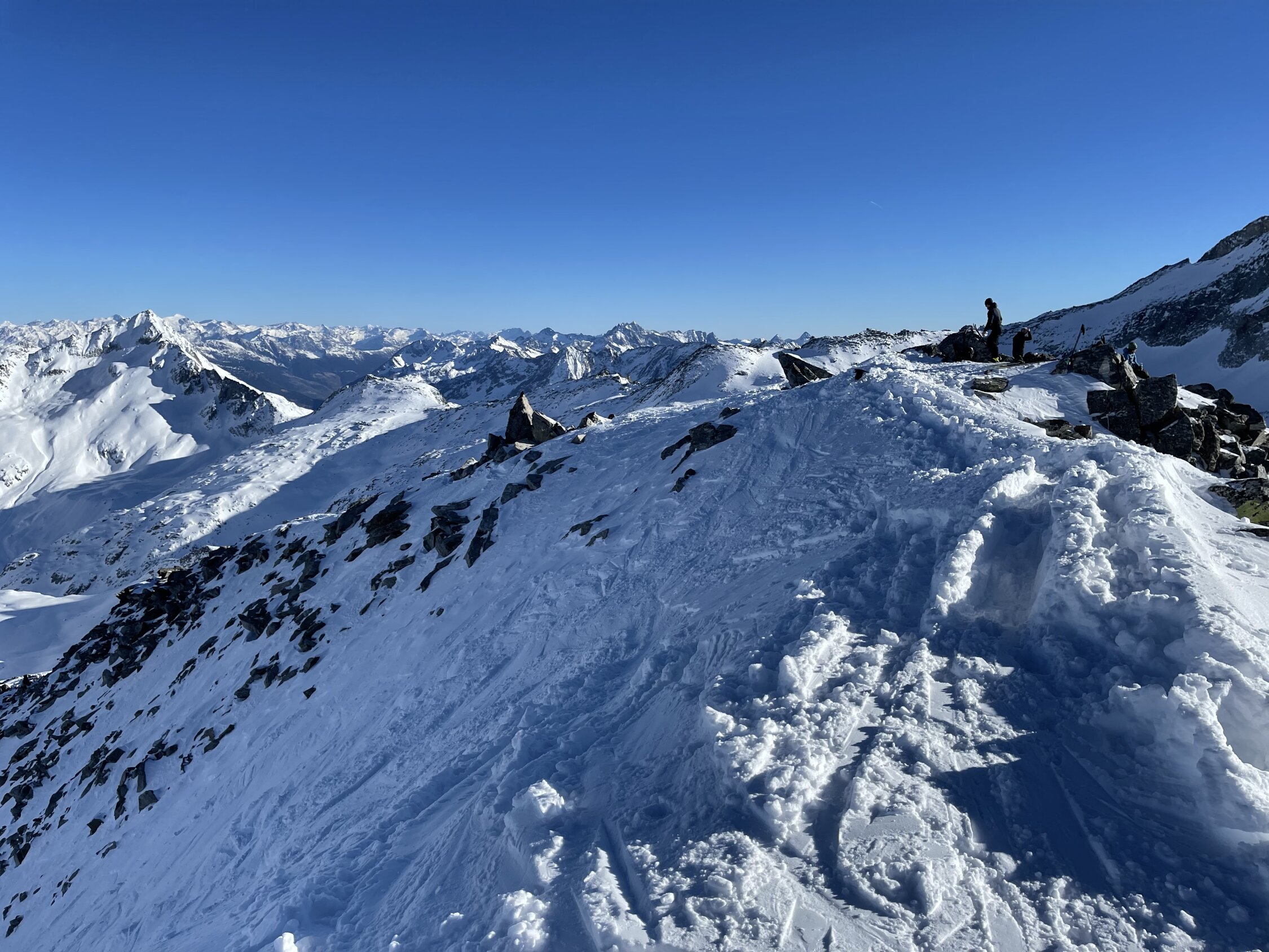 … top, nur halt recht wenig Schnee - die Abfahrt vom Rotällihorn nach Nordosten hat den besten Pulver …