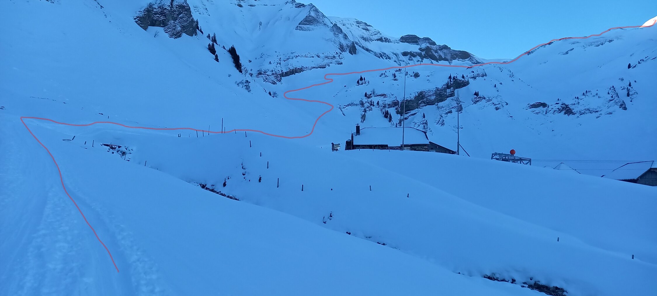 Aufstiegsspur sehr gut angelegt. Die Traverse zwischen Mittlist-Arni und Obrist-Arni kann ohne Harscheisen begangen werden. Der Grat ist ab 1900 m.ü.M. stark abgeblasen. Kurze Tragestellen. Abfahrt über Nordseite super Pulver angetroffen. Es ist aber Vorsicht geboten wegen überschneiten Steinen.