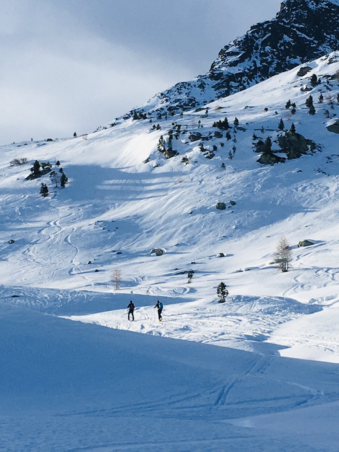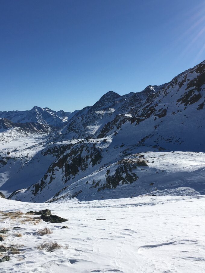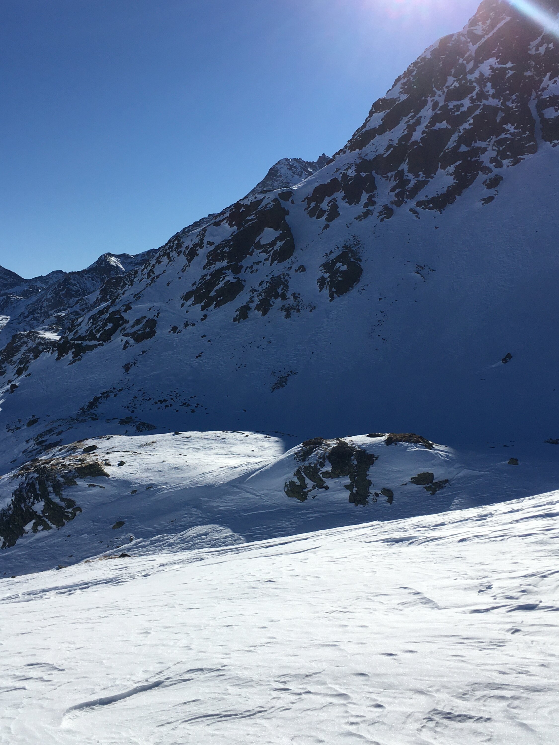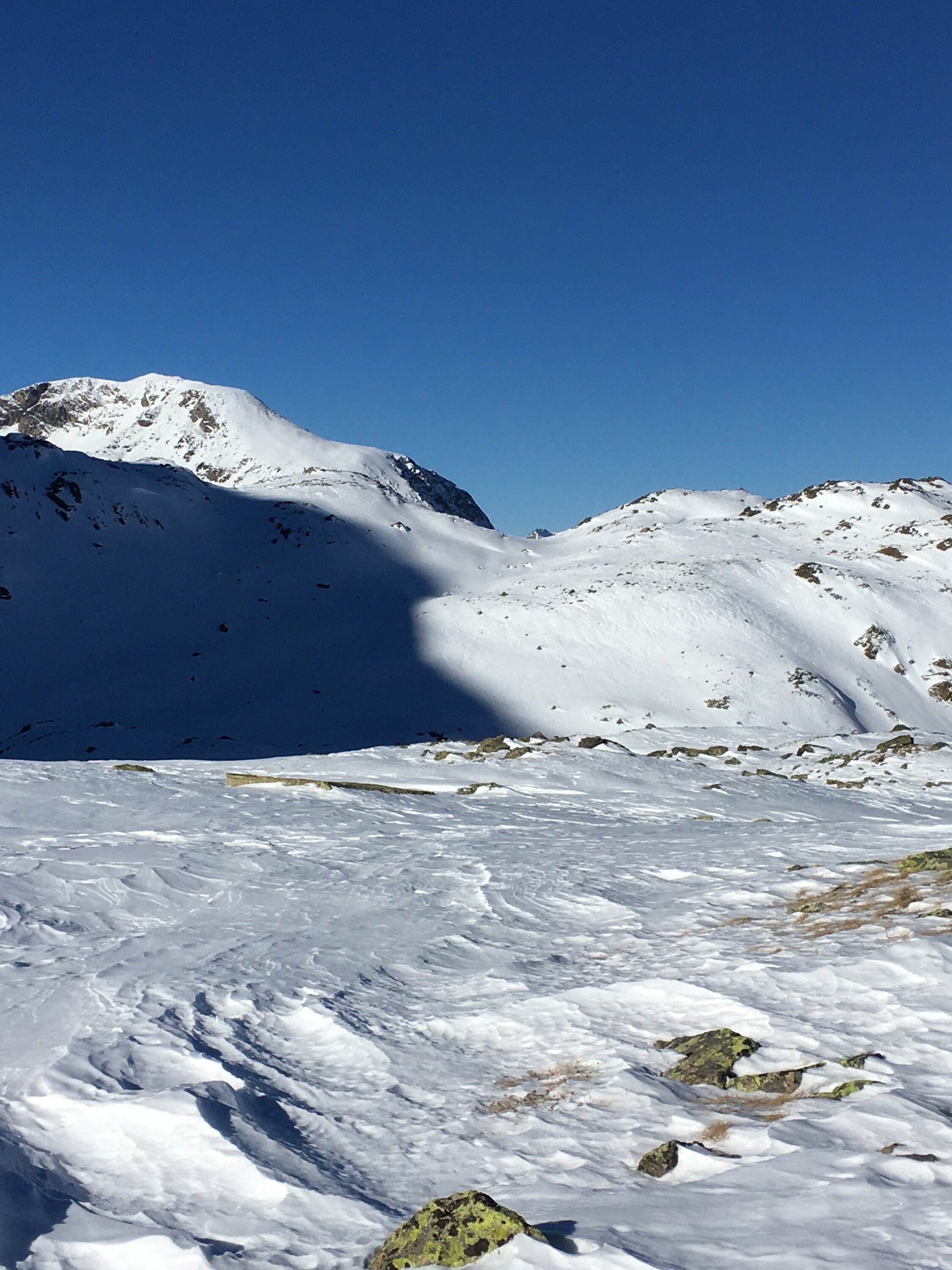 Sehr schöne kurze Tour in alpinem Gelände. Selten begangene Tour, zu unrecht. Bei Neuschnee tolle Abfahrtmöglichleiten. Heute war wie erwartet der Gipfelbereich mit Firn, Hartschnee und Bruchharst nicht so toll für Abfahrtspass, darum traversierte ich zur präparierter Abfahrtspiste Diavolezza mit gemütlicher und emtspannter Abfahrt. Wenig Leute auf der Piste. Empfehlenswert.