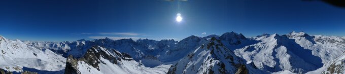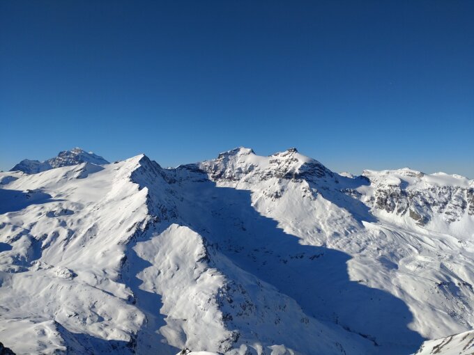 Aufstieg und Abfahrt: Es hatte 10cm bis 20cm wunderschönen Pulverschnee auf einer tragenden Unterlage. Die Nordwest-Abfahrt an den Rand vom Glacier de Cheilon war ausgezeichnet.