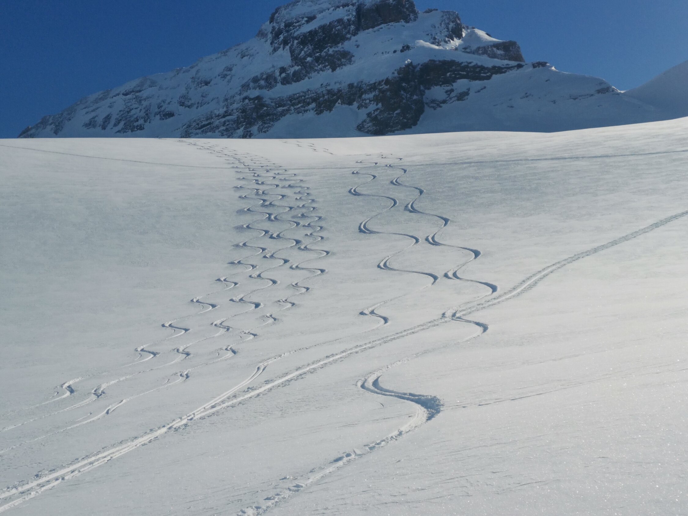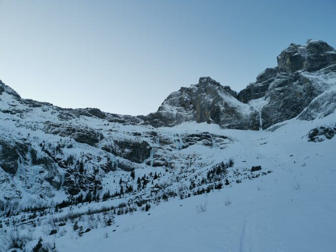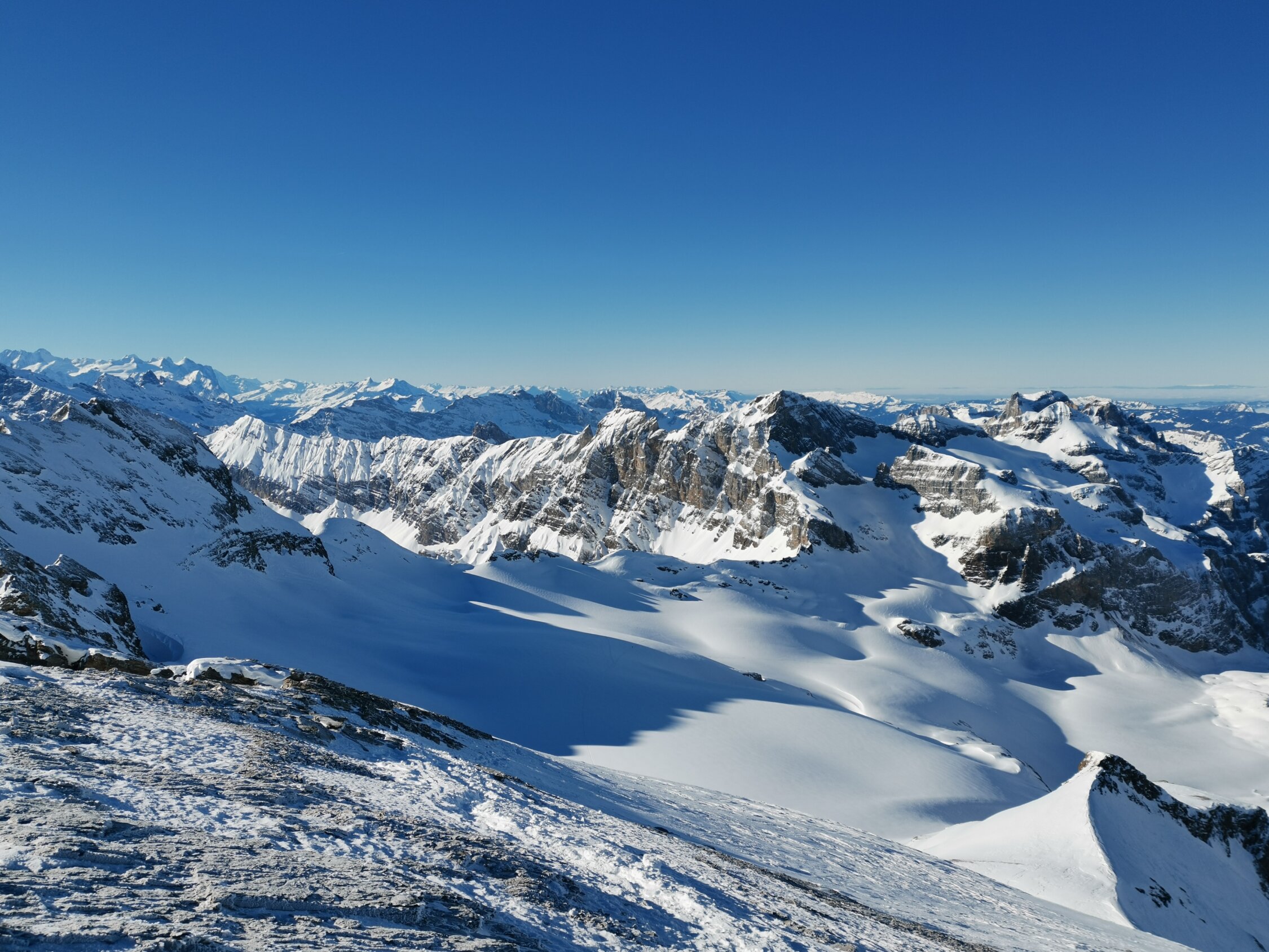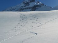 Forststrasse gut eingeschneit ab St.Jakob. Danach bis Gitschenhöreli wenig Schnee und Steine teilweise gerade knapp eingeschneit und etwas windgepresst - hier ist Vorsicht geboten. Gletscher gute Verhältnisse zum Powdern (nur wenig Wind bearbeitet). Gipfelhang können Steigeisen nützlich sein. Abfahrt mit den Skis vom Gipfel möglich.