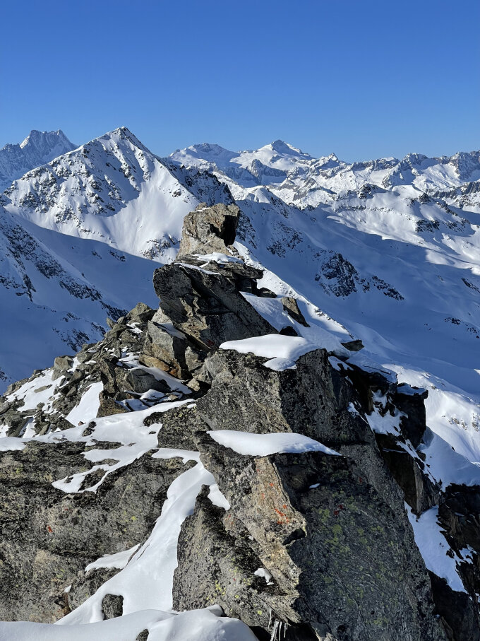 Ich bin über die Rotondohütte zum Leckihorn aufgestiegen und vom Rotällihorn nach NO abgefahren, das hat gut gepasst.