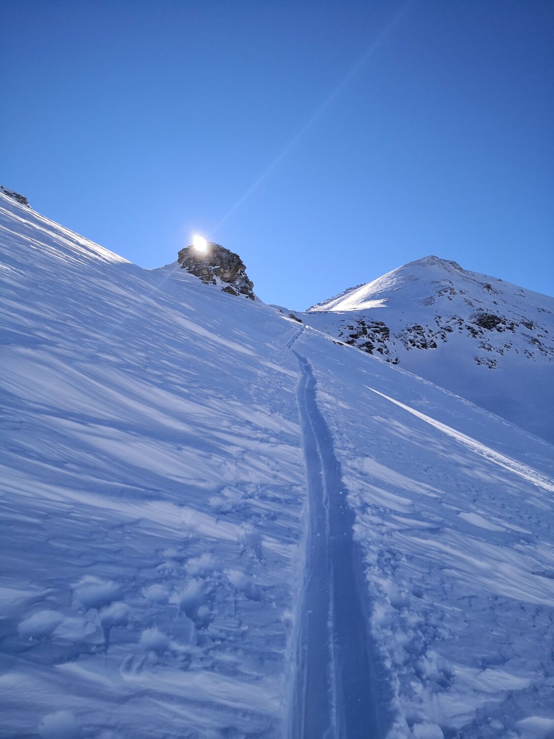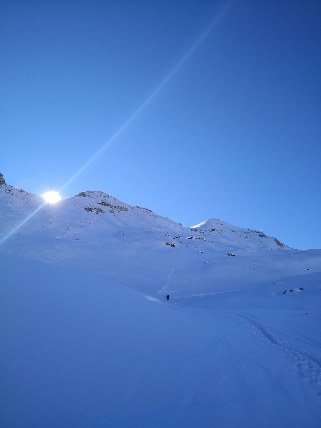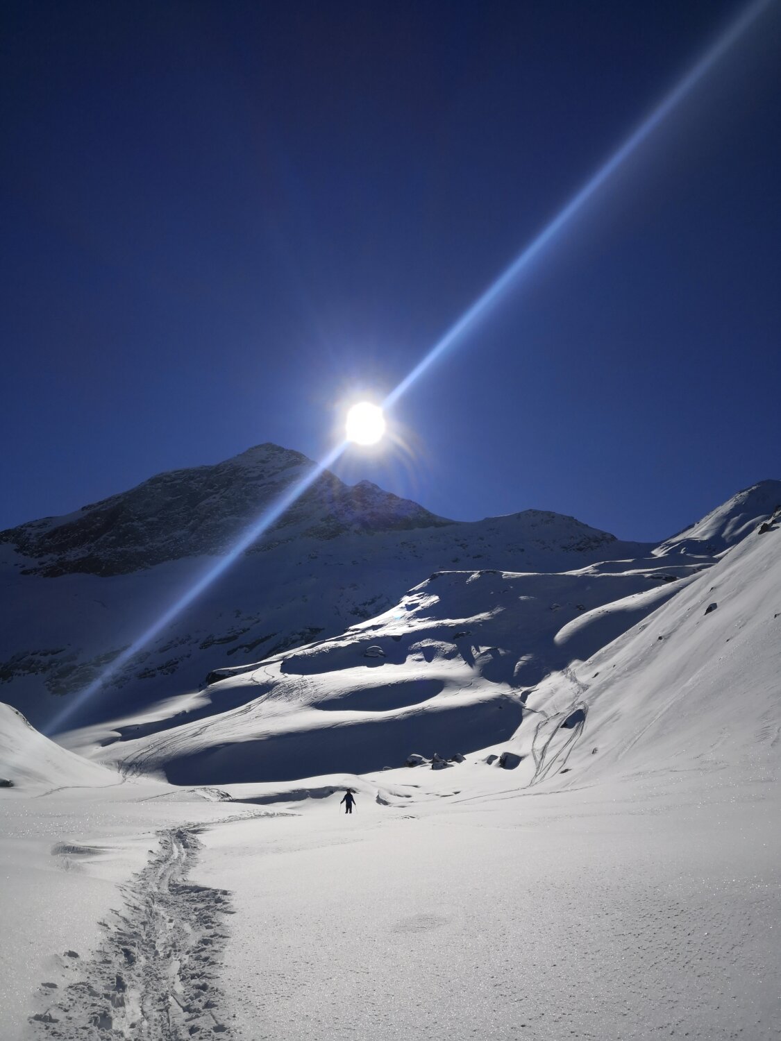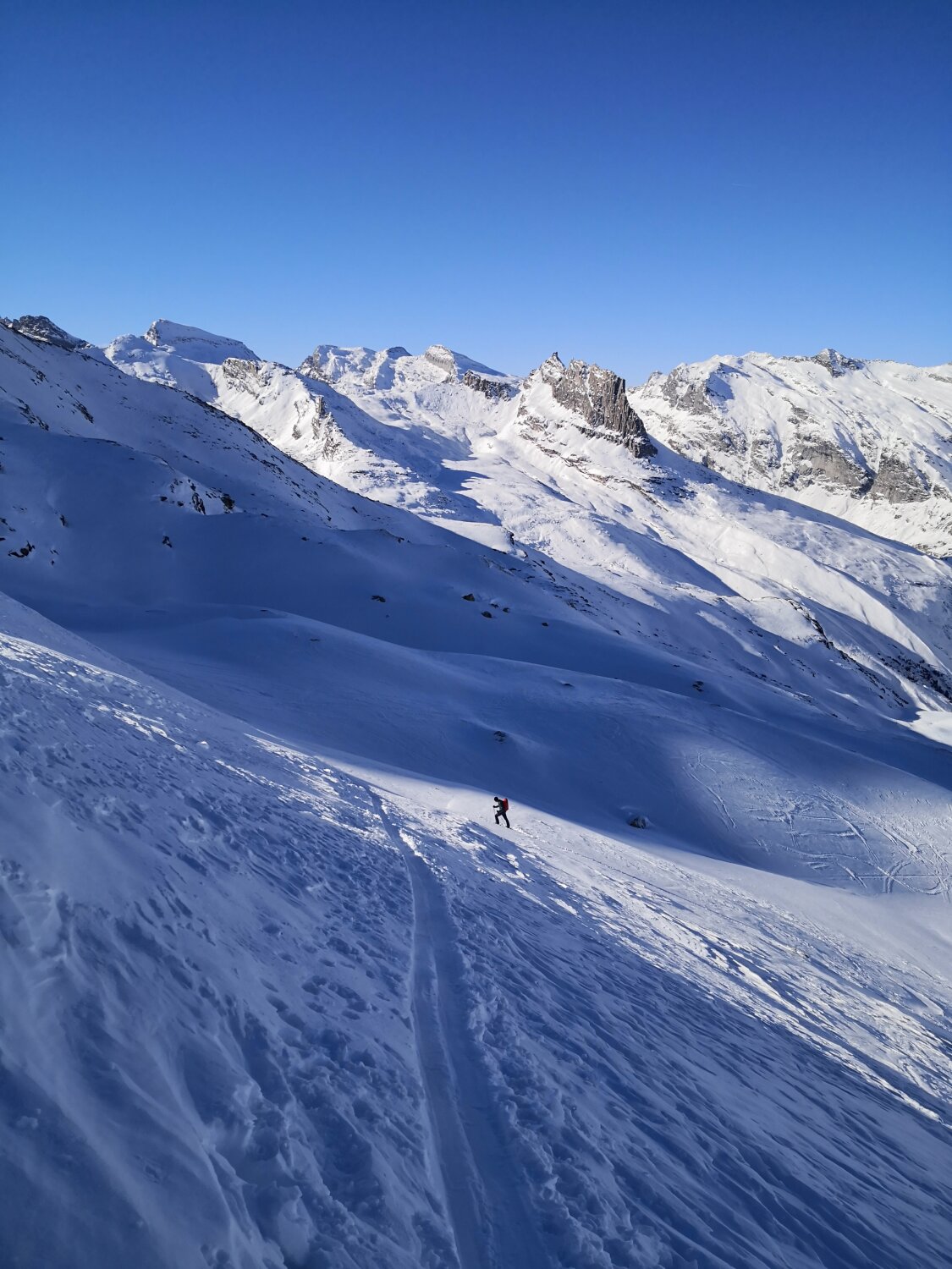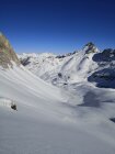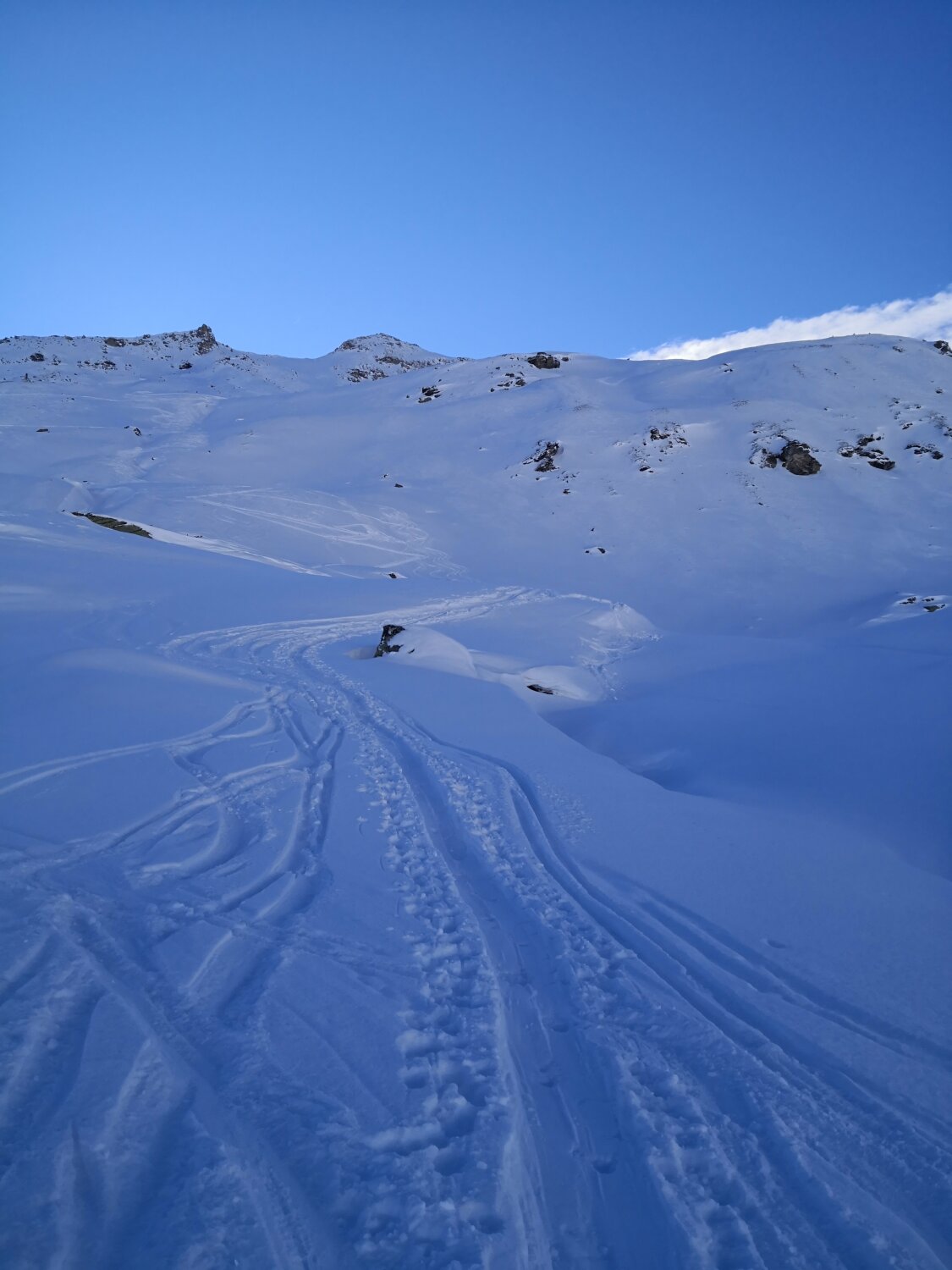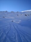 Ganzer, Aufstieg im Schatten, sehr gute Spur. In der Lücke dann Pause. Gipfel nicht gemacht, da Gipfelhang recht abgeblasen. Abfahrt Richtung Guraletschsee und weiter zur Alp aktuell nicht sehr angenehm. Zwar genügend Schnee, aber nicht mehr, zudem schnell wechselnde Schnee Verhältnisse. Nur wenig Powder gefunden. Aktuell wenig Abfahrtsvergnügen. Landschaftlich aber tolle Tour in einer ruhigen Gegend.