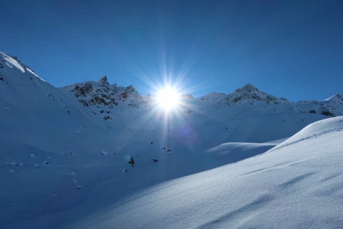 Start in St. Antönien mit gefühlt 500 anderen Tourengängern. Vor allem sehr große Gruppen (> 10 Personen) waren unterwegs. Haben deshalb umdisponiert und sind spontan aufs Rätschenhorn gegangen. Dort weniger Leute unterwegs.