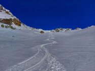 Perfekte Verhältnisse mit 20cm Pulver. Grat stark abgeblasen, Steigeisen und Pickel von Vorteil. Abfahrt über Tantermozza Chant Sura. Steine teils nur schwach überdeckt. Heftige Bise und sehr kalt