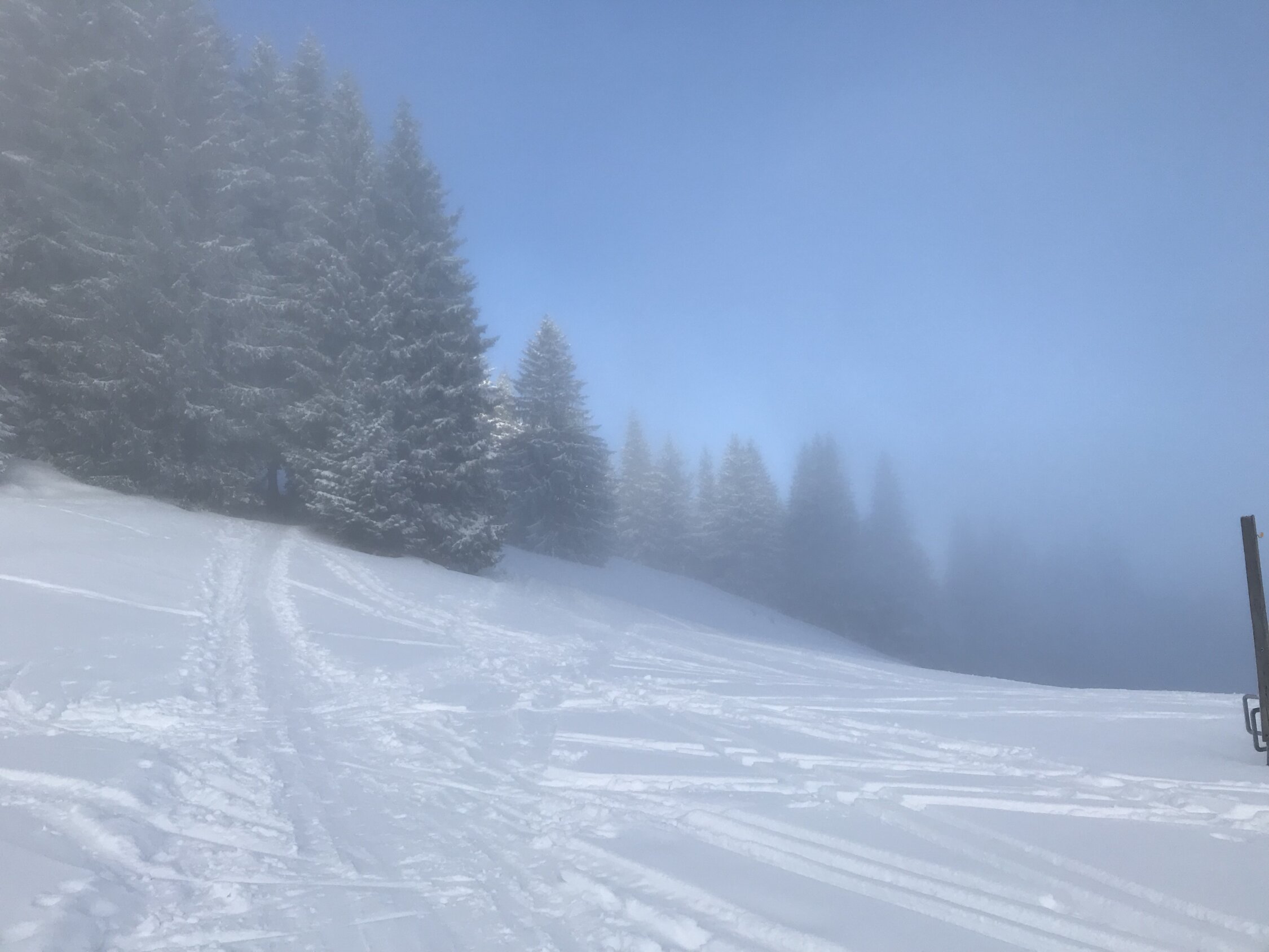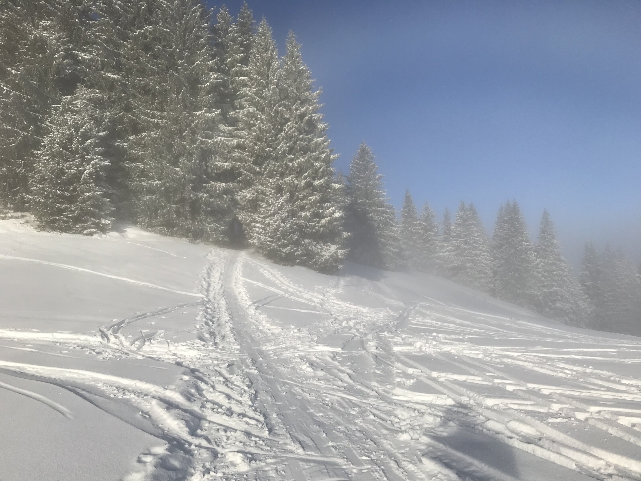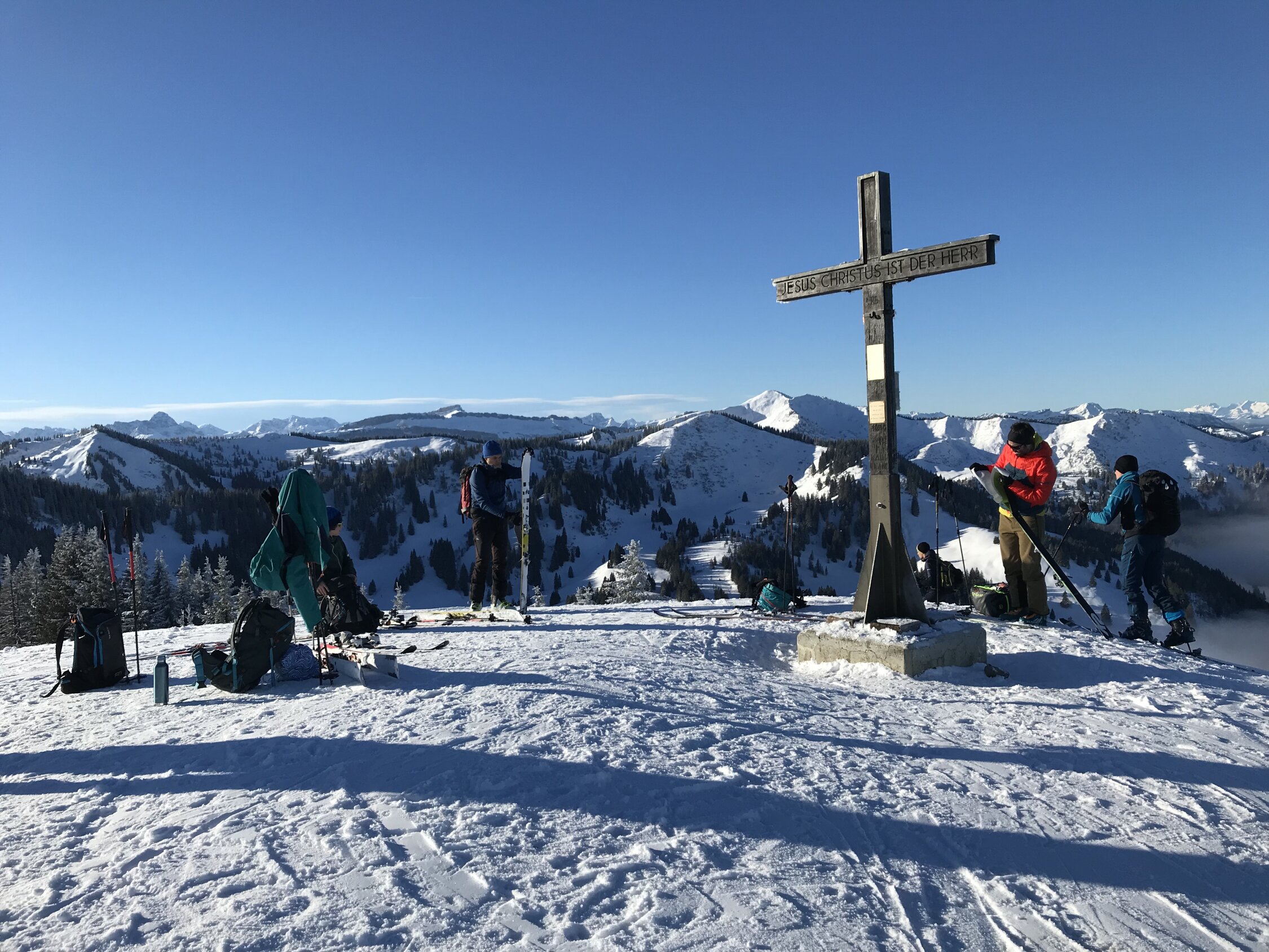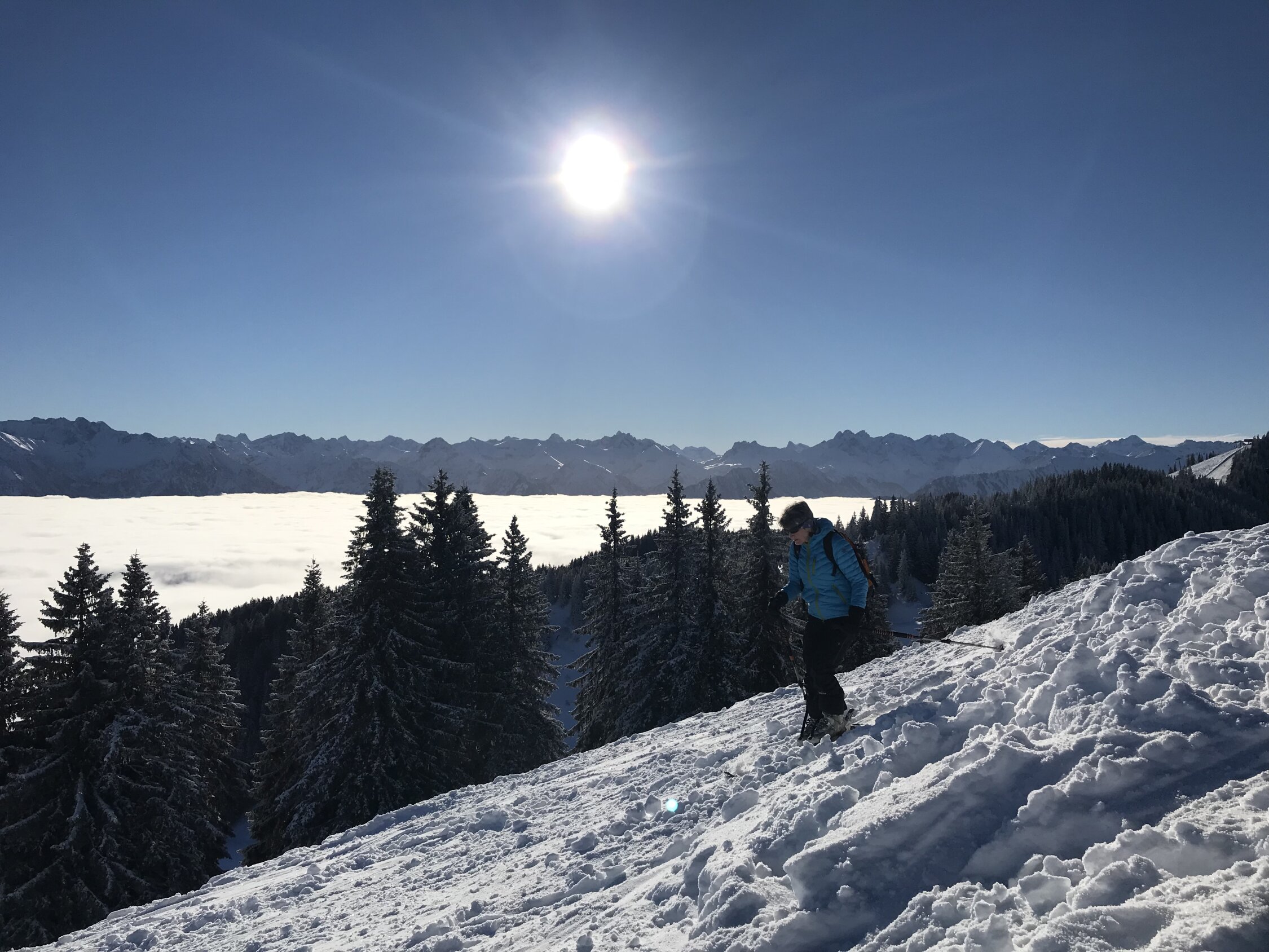Erstaunlich gute Verhältnisse - Aufstieg bei obheiterem Wetter, Sonne ab 1400 m. Abfahrt ins Ostertal unten mit tlw leichtem Bidenkontakt, sonst Pulver auf harter Unterlage. Nach Wiederaufstieg noch das Ofterschwanger Horn mitgenommen, gute Verhältnisse in der Abfahrt vom Sigiswanger Horn. Retour nach Ofterschwang über harte griffige Piste.