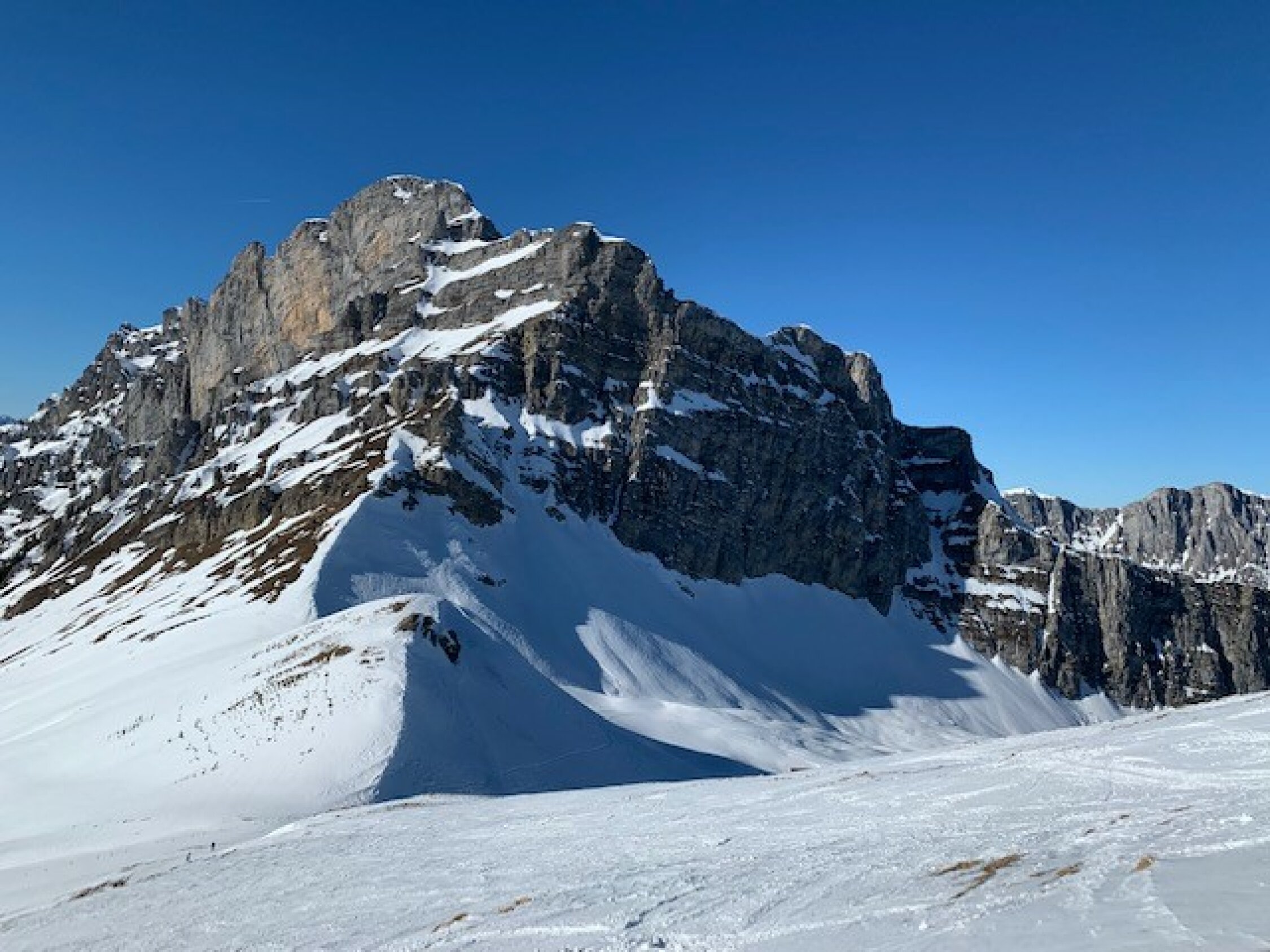 Beim Start um 09.45 Uhr -3.5°C. Wir stiegen wegen Schneemangel über die Strasse auf. Strasse im Grundsatz gut eingeschneit. Bei zwei Stellen (Bild 2 --> rote Punkte) braucht es etwas Aufmerksamkeit (Steine, Kies..) Restlicher Aufsteigt gut machbar. Ab Grimmifurggi pistenähnliche Verhältnisse. Angenehme Temperaturen und windstill. Nur fünf Personen auf dem Gipfel bei toller Fernsicht. Es sind ca. zehn weitere Tourengänger*innen aufgestiegen. Wir sind im Grimmifurggi unter der Schneewächte durchgefahren (Bild 4 --> gelbe Punkte) und hatten schönen Pulverschnee. Anschliessend durch den Waldweg runter. Bei den Stein- und Kiespassagen mit der nötigen Vorsicht. Obwohl wir Pulver gefunden haben die Beurteilung gut (pistenähnliche Verhältnisse und Stein- und Kiespassagen auf dem Waldweg).