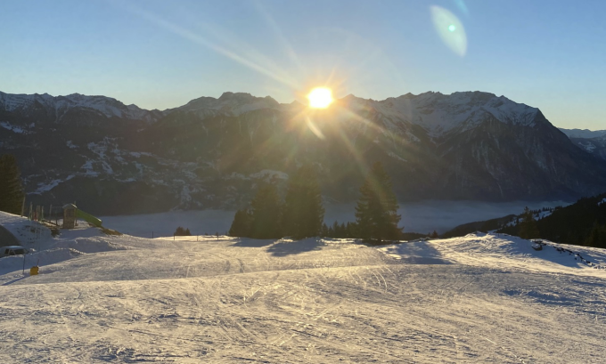 Insgesamt schöne und eindrucksvolle Landschaft bei schönem Sonnen schein und unten im Tal dichter Nebeldecke.