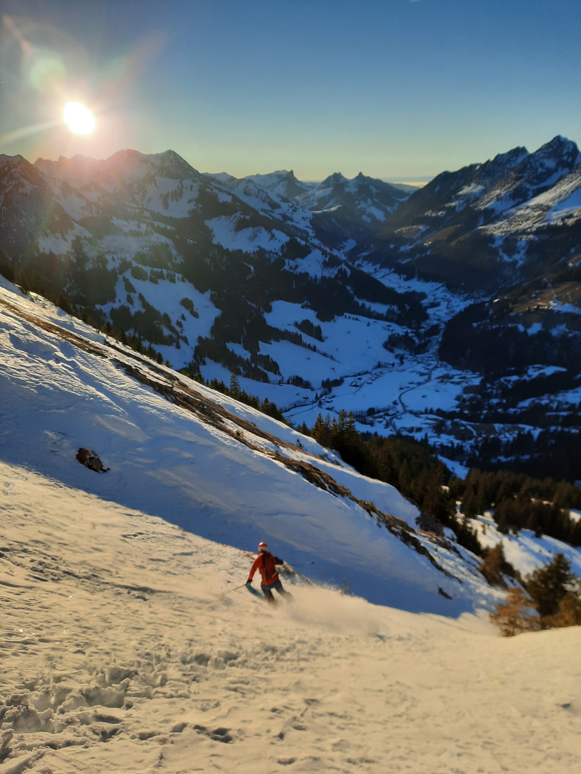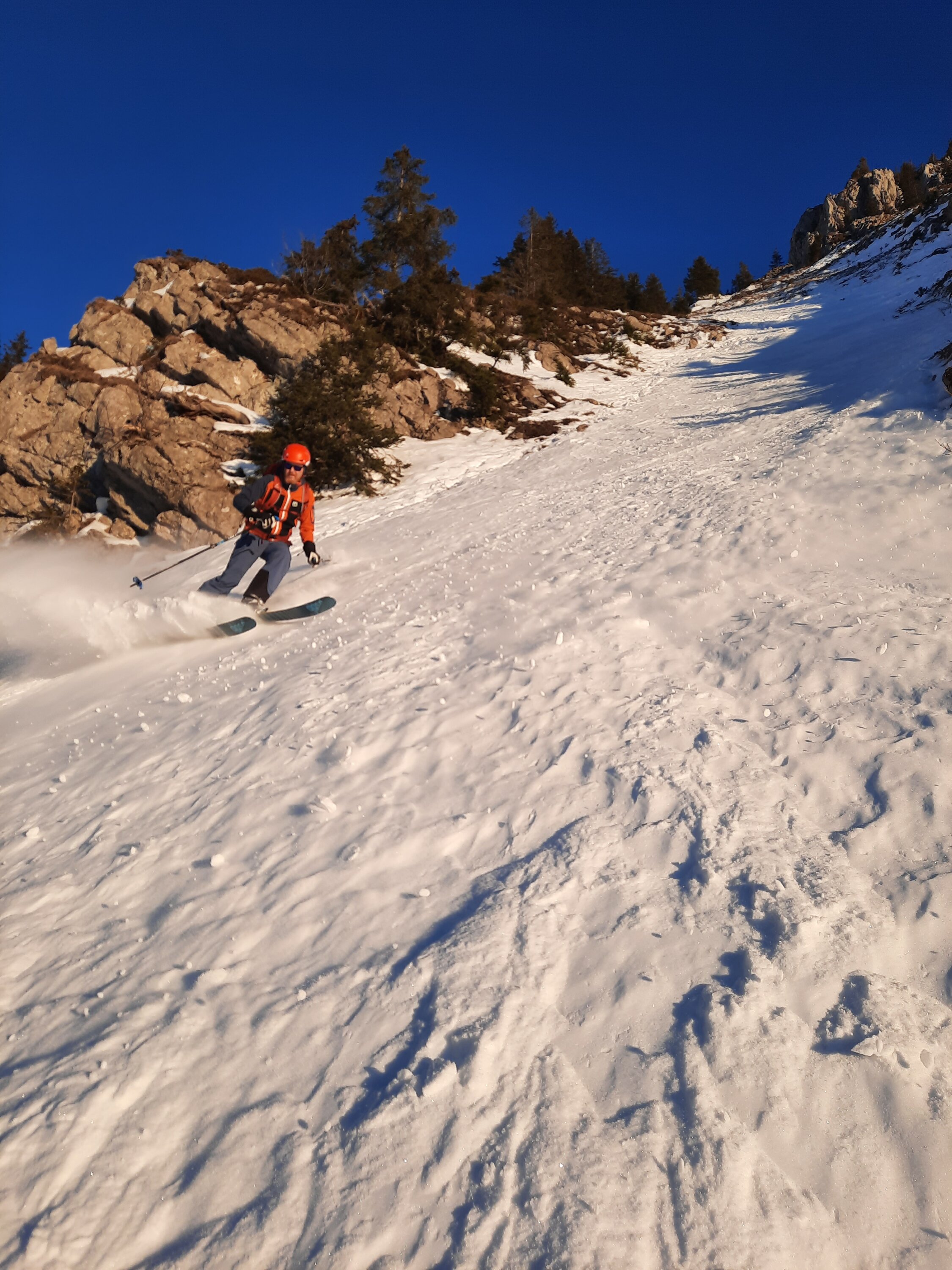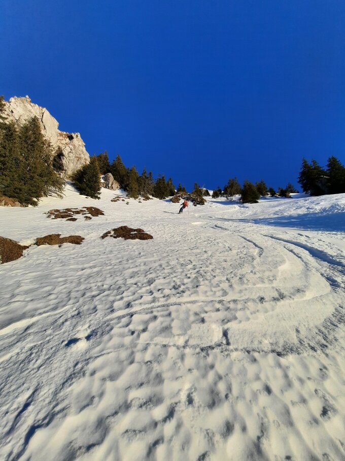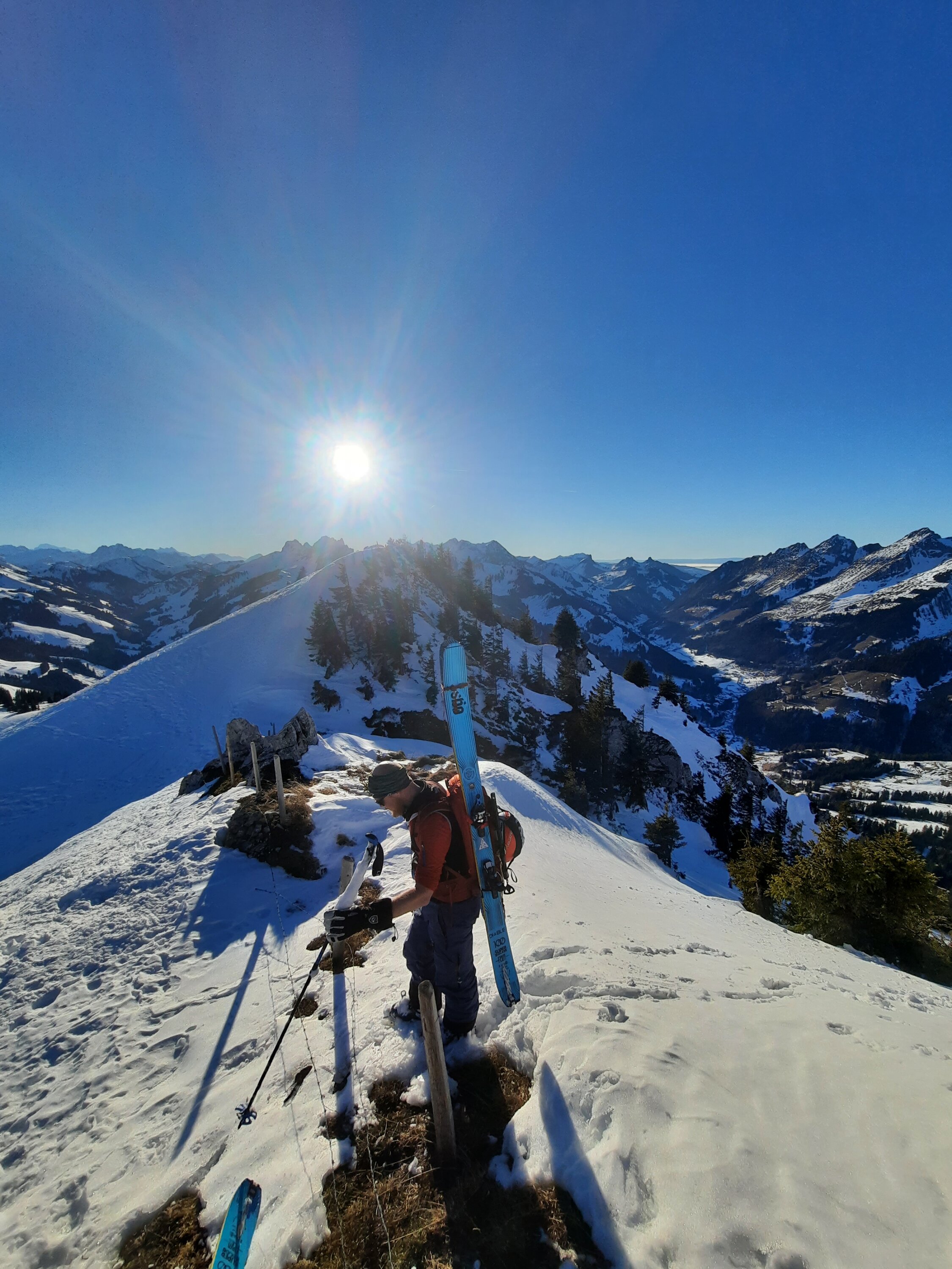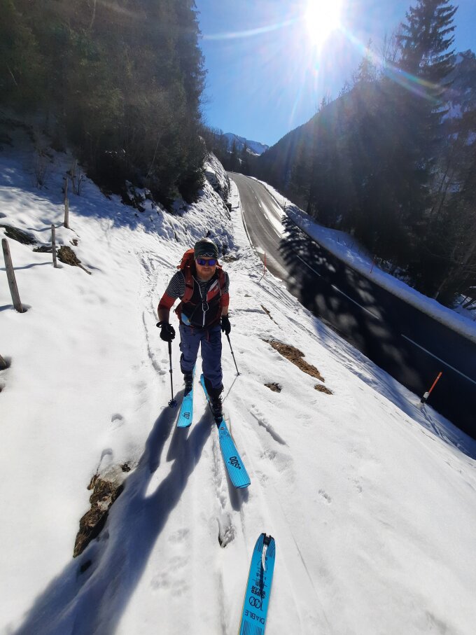 Start an Strasse direkt durch die offenen Waldschneisen hoch bis Alp Obfängli,knapp Schnee,für Abfahrt ungenügend.Ab Alp gut eingeschneit.Aufstieg Wand guter Trittschnee bis loser Pulver.Grat bis Gipfel fast aper.Abfahrt Wand mitte,immer dem meisten Schnee nach,schöner Pulver wechselnd mit Presspulver tragend,Ausfahrt etwas knapp.Resthänge top Puder bis Alp.Sind bis Alp Unter Ofängli gequert(noch schöne Hänge) und ab da der Alpstrasse bis runter Passstrasse gefolgt(Skischonend).Würde nächstes Mal wohl auch so Aufsteigen.