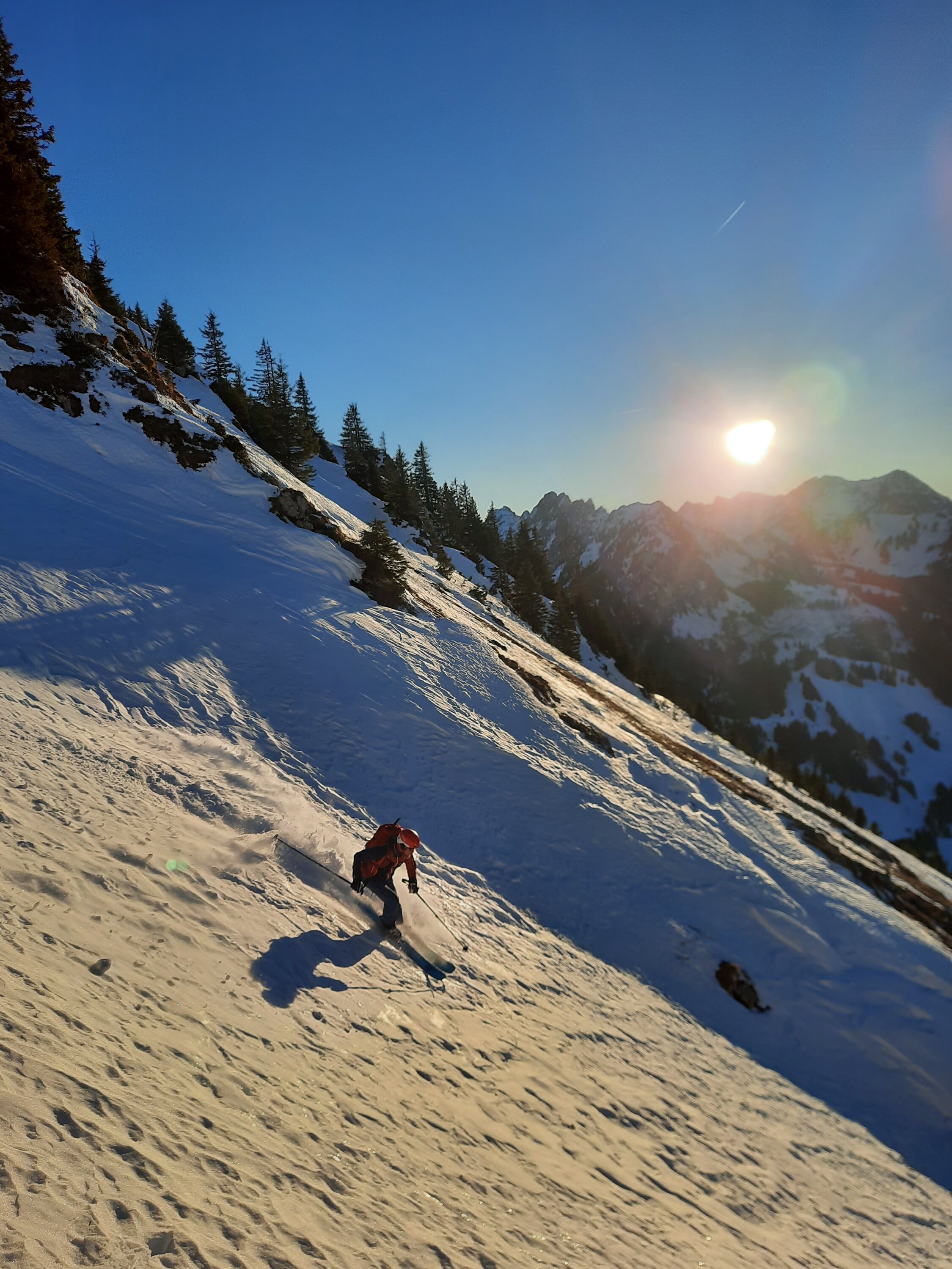 War am Samstag Nami kurz auf Bäder Normalroute und da sahs noch etwas weisser aus in Nord,Normalroute war harte Piste bis eisig(hatte nicht angesulzt..)...hat aber knapp gereicht um super Spass zu haben oben...für ganze Tour beidseitig Neuschnee abwarten.aber schon das Abendambiente in Wand wars wert..