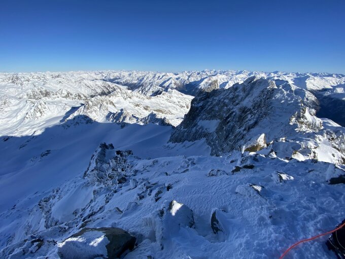 Allein Sonntag im Keschgebiet. Meistens gleich wie der Eintrag vom Freitag 21.01, der Samtags- Wind und Schnee hat uns ein bisschen mehr Spurarbeit gegeben (teils tiefe Pulver bei der Porta und Schlussaufsteig vom Skidepot). Ketten noch frei bei der Porta, ziemlich nur noch ein BH an der heikelste Stelle des Schlussaufsteigs frei.