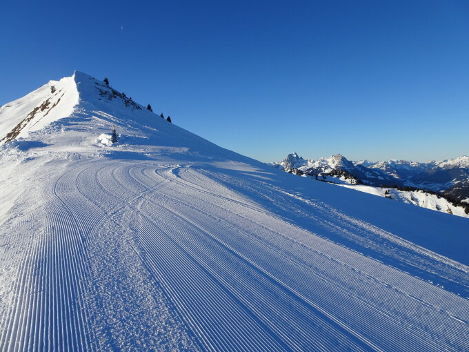 Schnee: zwischen Parwengebire und Parwengesattel teilweise knapp, danach gute Beedingungen, gute Spur bis Gipfel, in der Abfahrt mehrheitlich Pulver(ab ca.1250m ohne Unterlage, bei umsichtiger Fahrweise kein Problem(ich hatte keinen Steinkontakt)