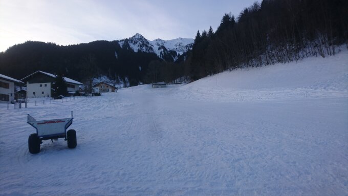 Direkt ab Parkplatz kann man starten, perfekte Piste bis zur Lindauer Hütte. Hinter der Hütte ist die Aufstiegsspur dann ziemlich von Fußgängern zertrampelt, Aufstieg ab und zu mit etwas Mühe aber dennoch problemlos. Wo sich die Spur zum Drusator/Sporaturm teilt wird es deutlich besser mit den Trittspuren bzw. sind keine mehr vorhanden. Querung zum Sporaturm etwas heikel, wir schnallten die Skier ab. Anschließend ins oberen Sporentobel, was sehr verfahren ist. Die Spur ist sehr hart und in teilweise mäßigem Zustand, Harscheisen sehr empfehlenswert. Die Querung ins Joch zwischen kleinem und mittlerem Turm ist ebenfalls etwas heikel und ziemlich verfahren - das abschnallen der Skier erschien uns die bessere Wahl. Der letzte Hang war um 12°° Uhr teilweise noch immer recht hart und erforderte Harscheisen, vor allem im unteren Bereich - oben problemlos. Abfahrt: Hänge generell stark befahren, bis zum Sporentobel auf Höhe Sporaturm etwas mühsam und kräftezehrend in den alten Spuren. Über den Tiergarten ins Sporentobel dann besser und noch immer schöner Pulver. Schlechte Sicht da alles im Schatten, es empfiehlt sich eine kontrastverstärkende Skibrille. Weiter bis zur Hütte auf guter Spur, schieben kaum notwendig.