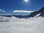 Die Abfahrt war recht gut. Lange Querung mit kleinen Aufstiegen zum Crap la Tgina. Abfahrt zu Punt Desch und über die Talabfahrt zurück.