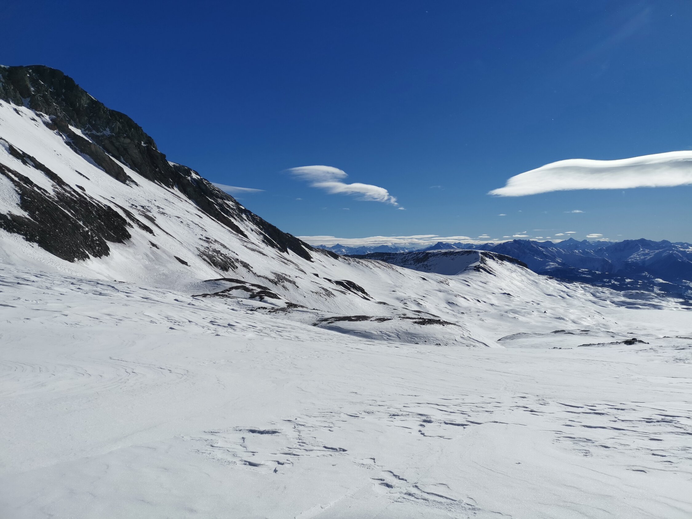 Ab Punt Desch wurde der Wind immer stärker. Der Aufstieg zum P3039 war recht abgeblasen, deshalb zu Fuß hoch. Umkehr im Joch vor dem Vorgipfel vom Piz Segnas. Hier hatten die Windböen schon ziemlich an meinem Gleichgewicht gezerrt. Zu Fuß über den abgeblasenen Rücken zum Piz Sardona.
