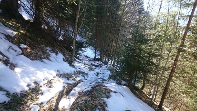 Abfahrt oben pulver, unten schwer mit dauernd ãnderndem Schnee.
